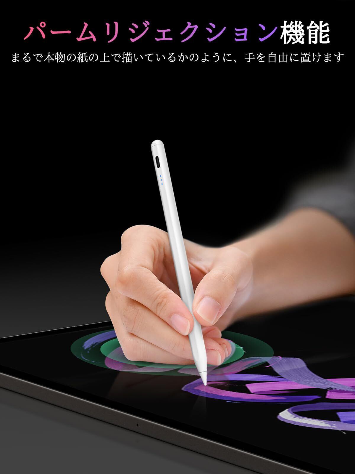 KEEPRO iPad ペンシル 2018〜2025年iPad対応 Apple Pencil代替 タッチペン スタイラスペン Type-C急速充電 超高感度 傾き感知 パームリジェクション 磁気吸着 誤作動防止 極細ペン先 替え芯3本付き【Bluetooth不要・電源オンですぐ使える!】ホワイト