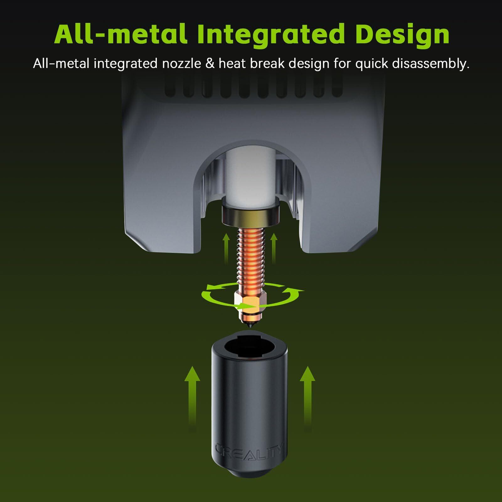 迅速な取り付け:0.6mmノズルとヒートブレイクはオールメタル一体化設計を採用し、迅速な分解と便利な交換を容易にします。