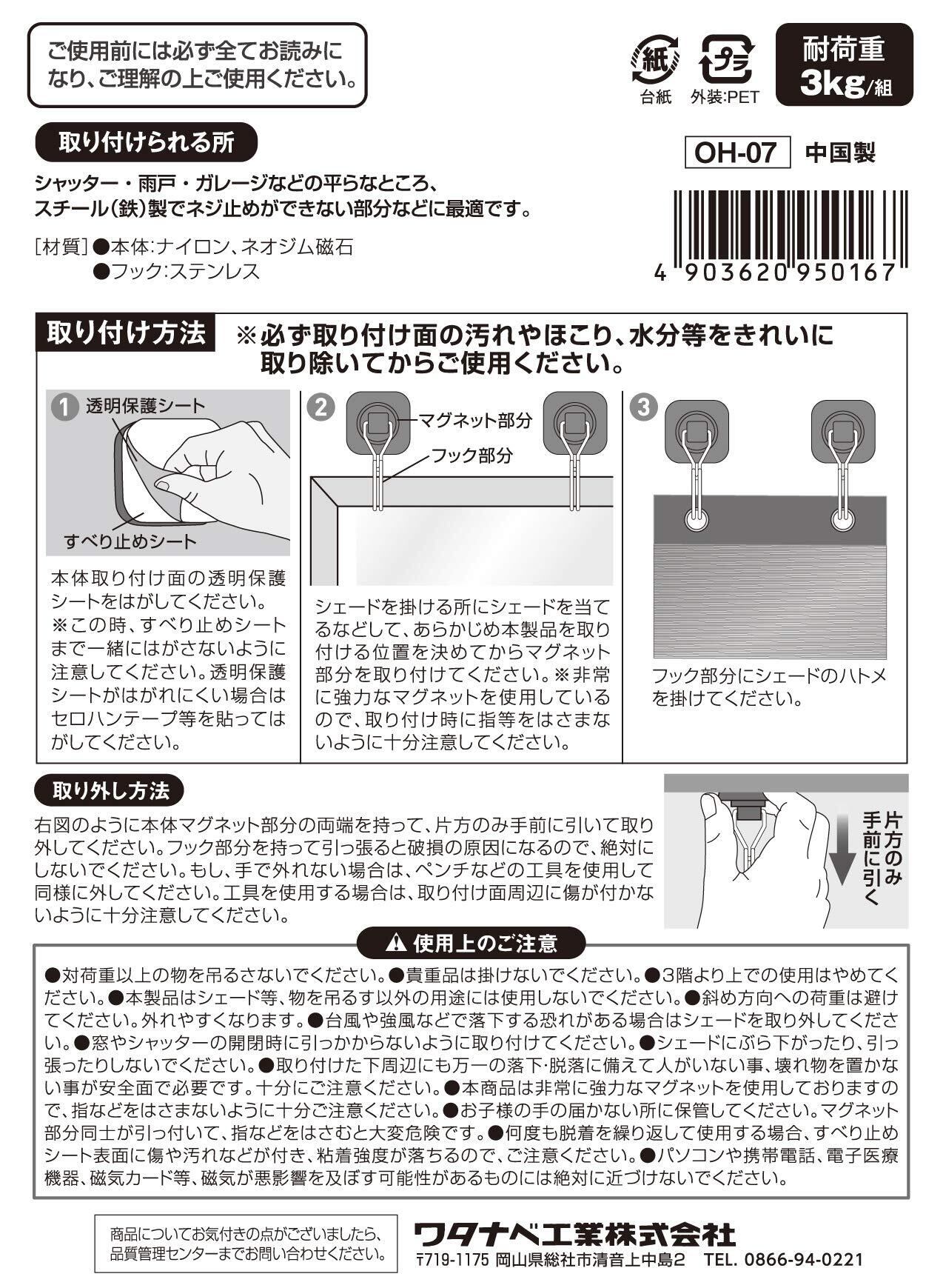 ワタナベ工業 ワタナベ オーニング用マグネット式フリーフック OH-07 すだれ ブラック