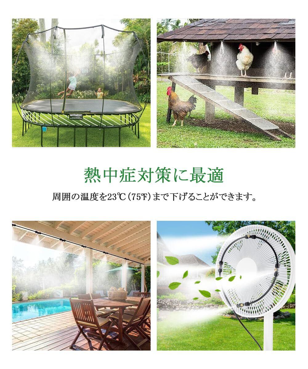 【広い適用】灌漑システムセットは霧化、芝生灌漑、テラス、花園、野菜灌漑、屋上冷却、灌漑、農業、野菜、温室、花壇、プール霧冷却灌漑などに適しています。灌漑の手動給水と比較すると、75%の節水が可能です。