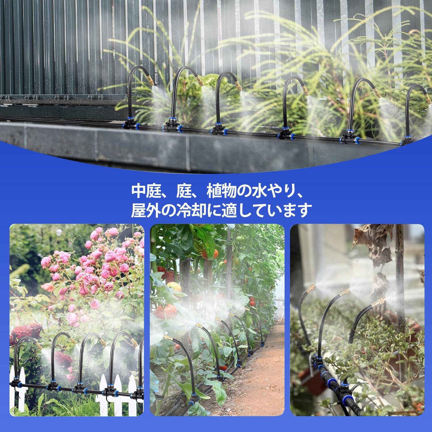 【特価セール】Menetop 噴霧ノズルミストシャワー 屋外 10M ミストノズル 360°曲げ可能な点滴灌漑キットガーデン用自動灌漑システム、温室、庭、芝生、植物用の調節可能なガーデン散水ミストシステム (10) | allstore2