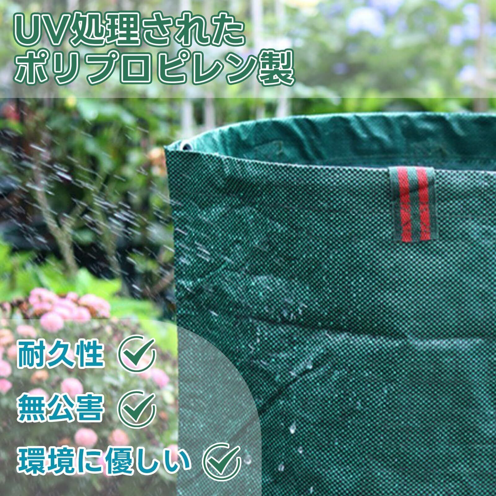 【耐久性が抜群】UV処理されたポリプロピレン製のターポリンから作られたガーデン廃棄バッグです。再利用可能な分解性材料で、耐久性、無公害、環境に優しい高品質な室内室外用収草袋です。プラスチック製ゴミバッグと比べて、この大型庭用袋は繰り返して再利用可能です。