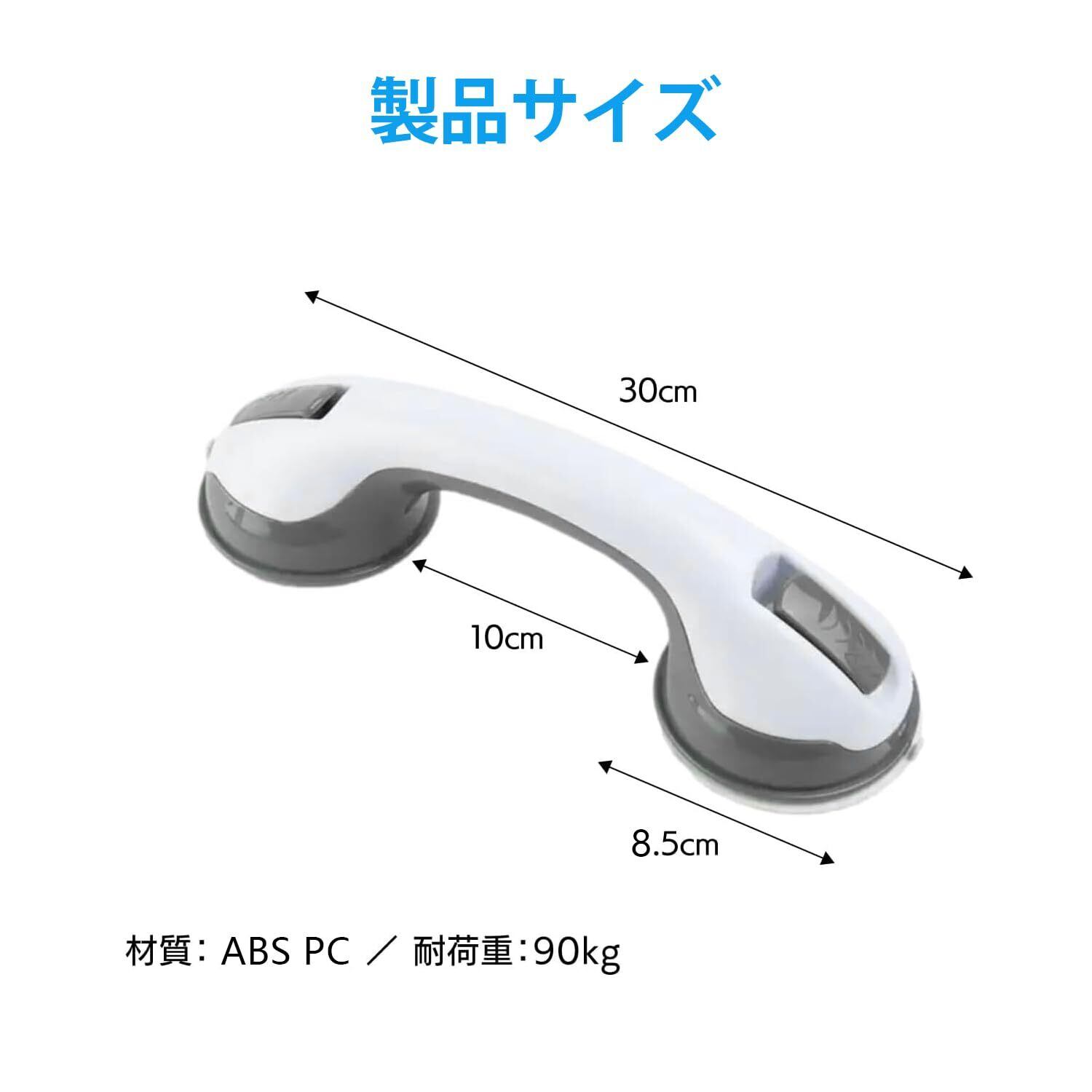 【抜群な吸盤デザイン】強力吸盤はアップグレードされたより厚いABS素材で製作しており、より耐久性があり、更に強力です。超耐荷重で、壁に長く掛けられ、より強力な吸引力を備えています。手すりの取っ手が広く、持ちやすくなっています。 広いグリップエリアは強い吸引力を保障できます。