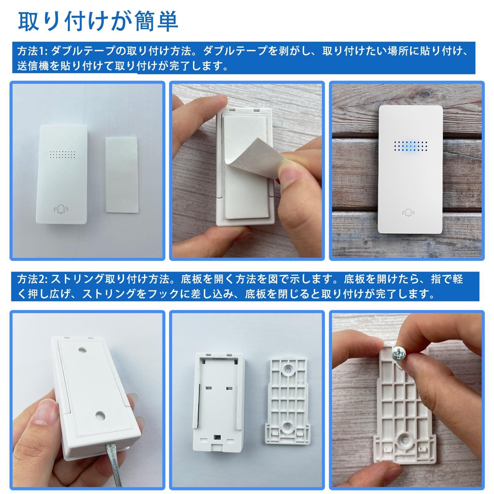 【増設自由&多用途】1つの送信機が複数の受信機に接続可能。1つの受信機も複数の送信機に接続することもできます。送信機と受信機を任意に組み合うことができ、2対2、3対2などが実現可能です。 来客時の玄関チャイム、介護、御店や事務所での連絡や呼び出しに様々な場所にご利用できとして大活躍です。 お年寄り、子ともや体の不自由な方のチャイムとしてもおすすめです。