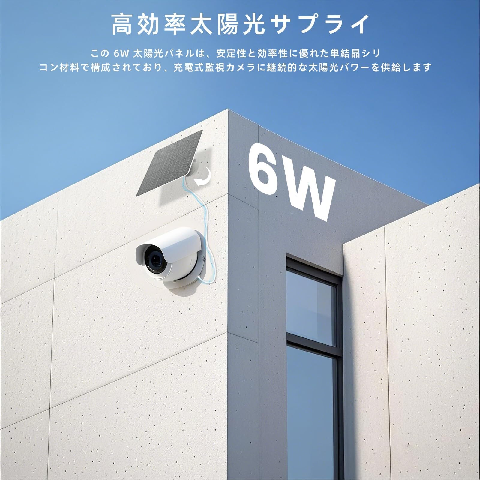 【高効率な太陽光供給】6W の太陽光パネルは、安定した高効率な単結晶シリコン材料で製造されており、耐久性があり長期使用に適しています。充電式監視カメラに継続的な太陽光電力を供給します