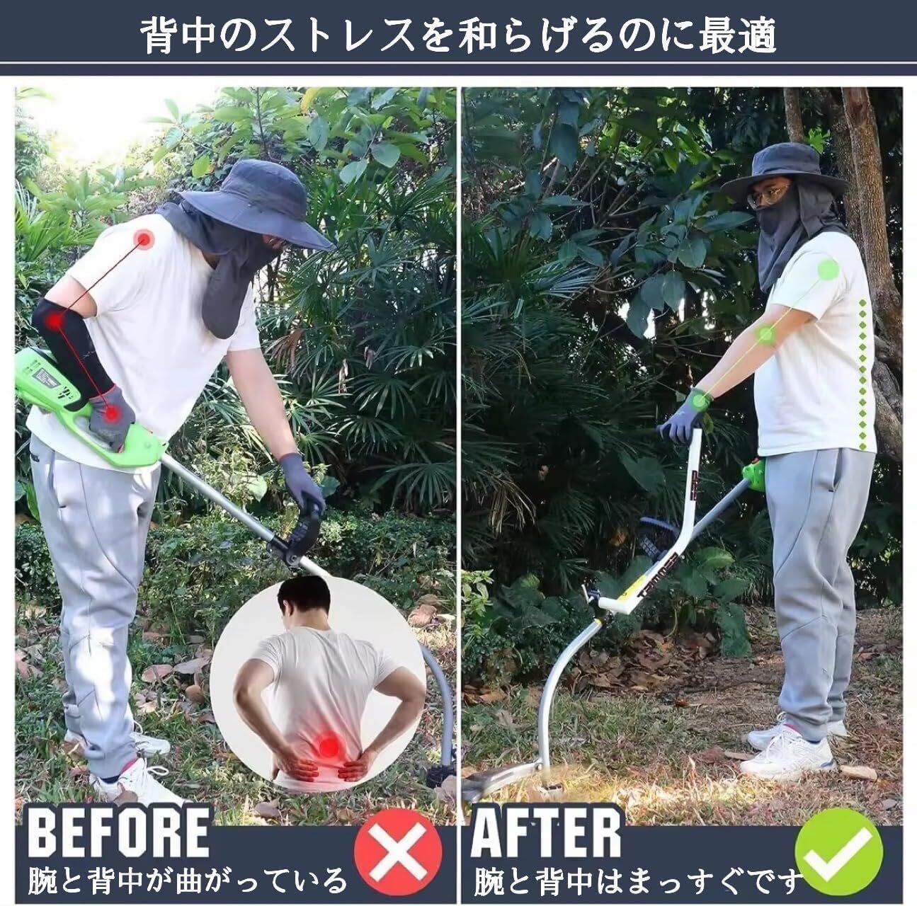 人間工学的で快適:このトリマーハンドルを取り付けた後、そのプロフェッショナルなデザインにより、トリミングが人間工学に沿って調整され、快適なユーザーエクスペリエンスが提供されます。筋肉の緊張に別れを告げて、楽にガーデニングを楽しみましょう。