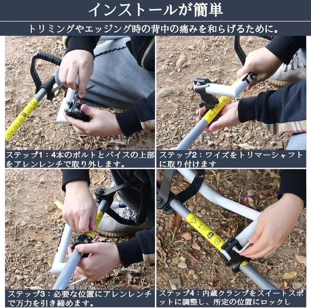 取り付けと使用が簡単:当社のトリマーハンドルはトリマーシャフトに簡単に取り付けられ、トリミングやエッジングの際に役立ちます。しっかりと取り付けるだけで、手間のかからないガーデニングをお楽しみいただけます。
