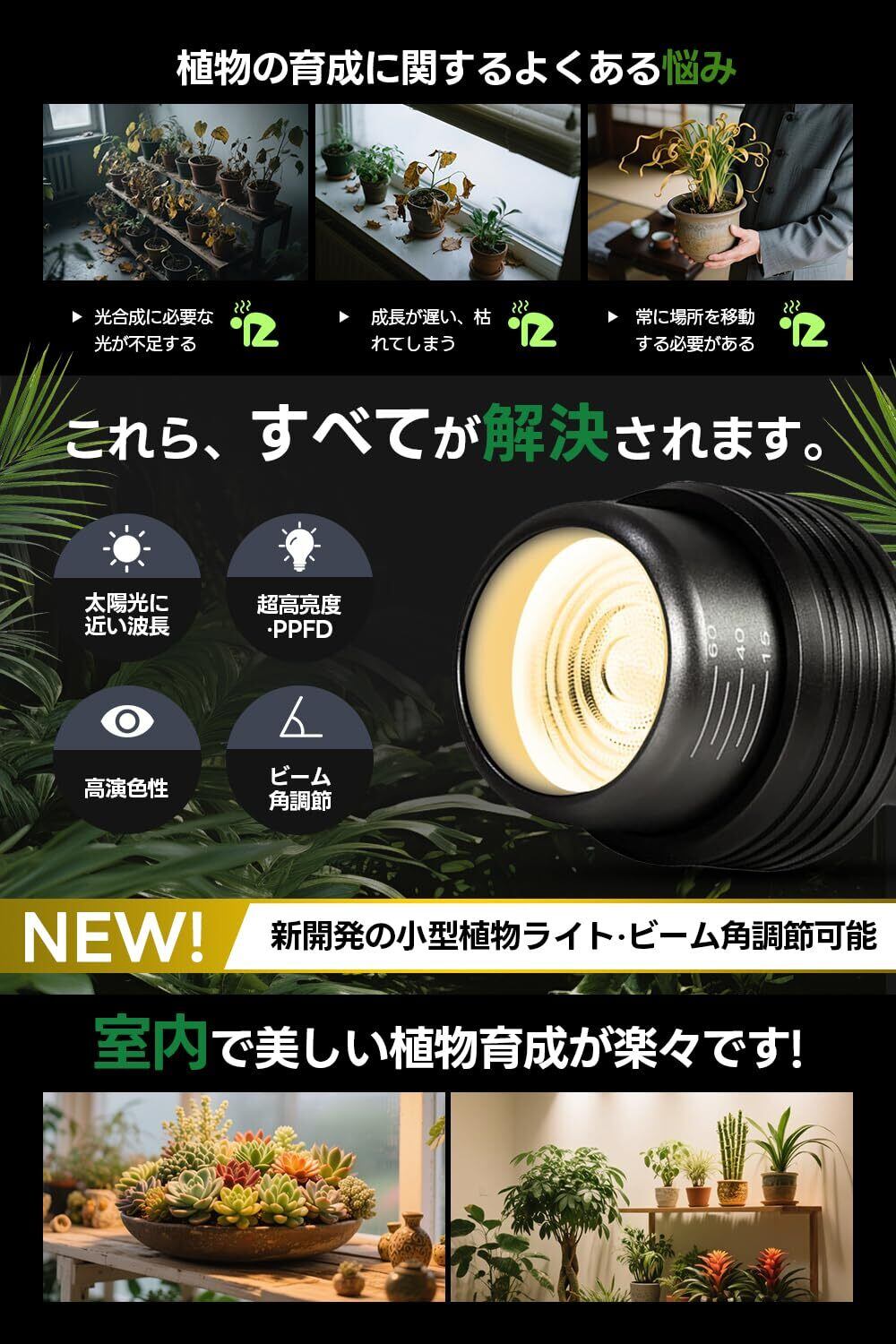 SPAHER 植物育成ライト 15W LED E26口金 フルスペクトル 高演色性 高PPFD ビーム角度調節 室内園芸用 水耕栽培 ブラック 4000K