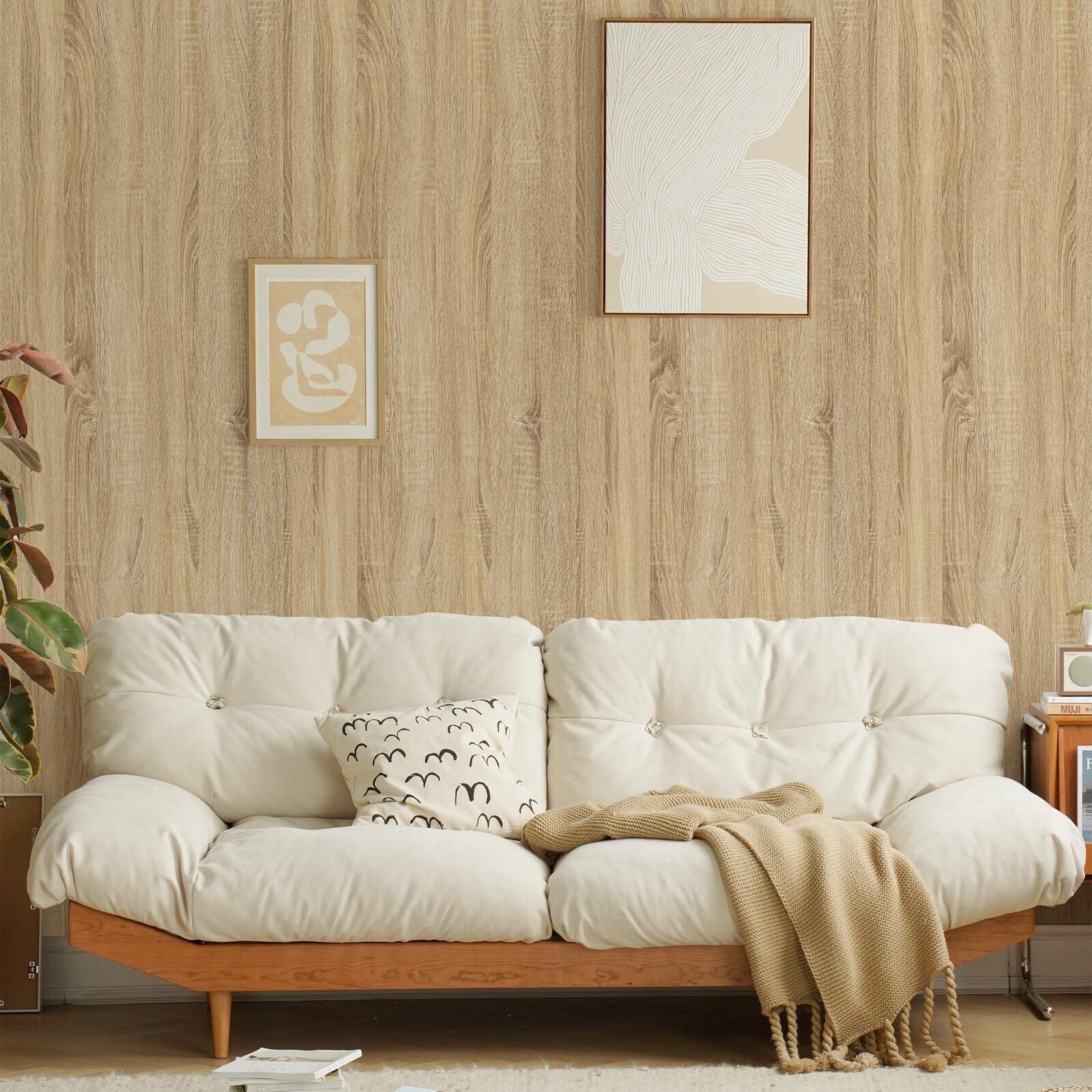 リメイクシート【木の質感】イエローの天然木目、クリアでリアルな質感、心地よい手触り、ナチュラルカラーが居心地の良い空間を演出し、リフォームは非常に便利です、一人で完了することができ、お気に入りのエフェクトをDIYできる、景色を動かす楽しさを楽しむことができます。