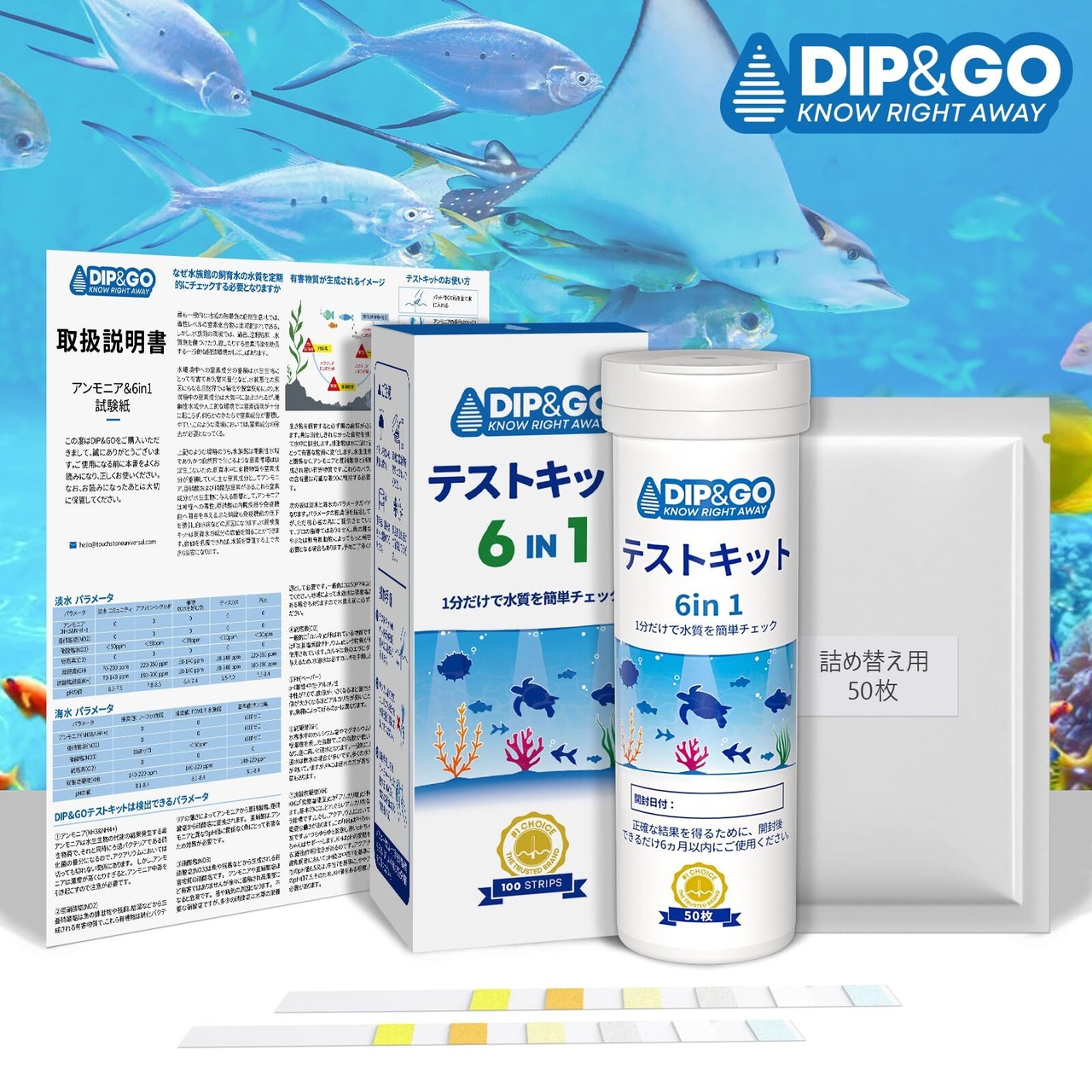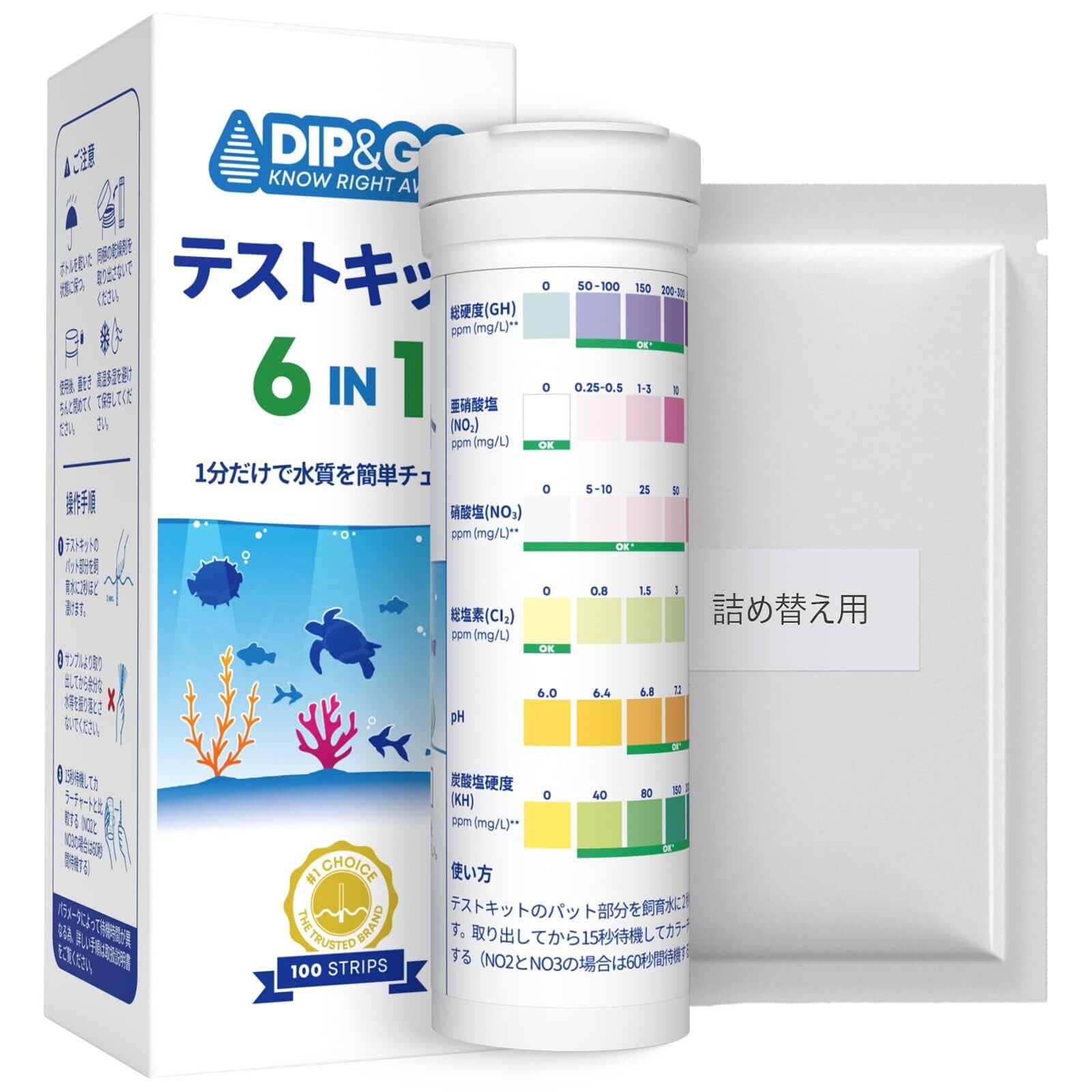 DIP & GO DIP & GO 水質検査キット アクアリウム 試験紙 水槽 水質検査魚 タンク 淡水 海水兼用 総硬度(GH) 亜硝酸塩(NO2) 硝酸塩(NO3)総塩素(CI2) pHの値 炭酸塩硬(KH) 100pcs(50pcs+詰め替え用50pcs)