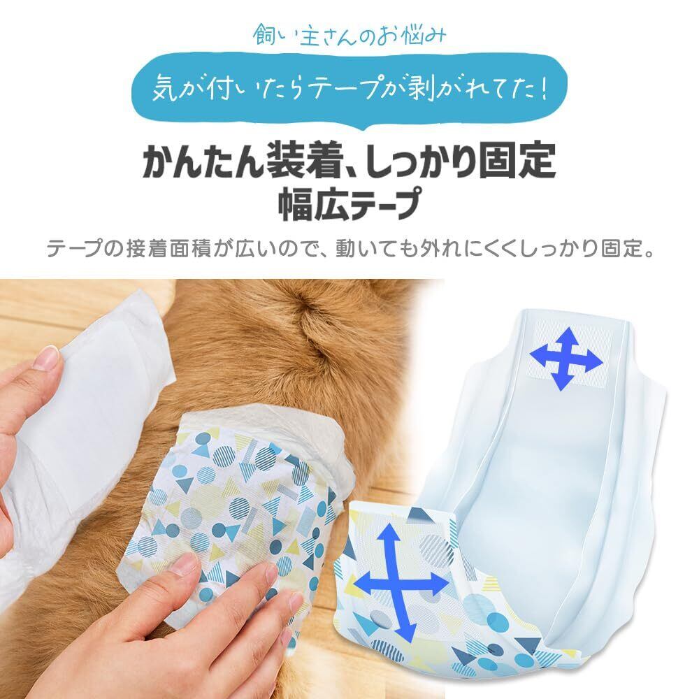 ワンちゃんと飼い主さんの快適な毎日をサポート!モレへの不満を徹底解決!長時間モレを防ぐロング吸収体全方位カバーで横モレも防ぐ!