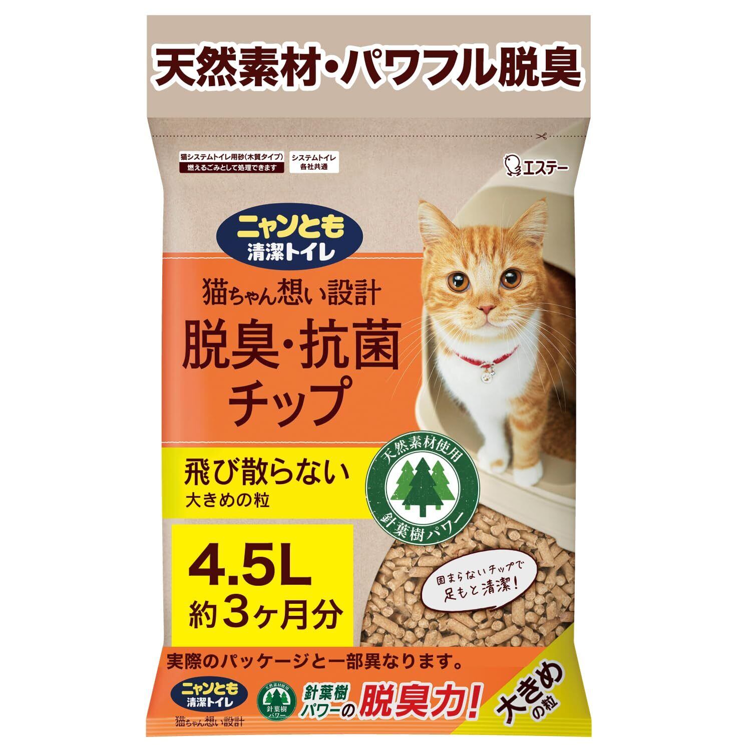 ニャンとも清潔トイレ 猫砂 [天然素材でパワフルに脱臭] 脱臭・抗菌チップ 大きめの粒 4.5L [ 限定] システムトイレ 猫用 消臭 ネコ砂
