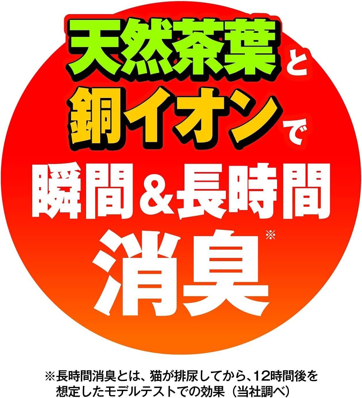 天然茶葉と銅イオンのWの消臭効果で、オシッコやウンチのニオイをすばやく消臭。銅イオンの消臭・抗菌力で、イヤなニオイの発生を抑え、消臭効果が長続き。オシッコでぬれた部分が緑色にカラ ーチェンジ。スピーディーに固まり、汚れた部分は簡単に燃えるゴミとして捨てられます。紙製なのでラクに持ち運べます。