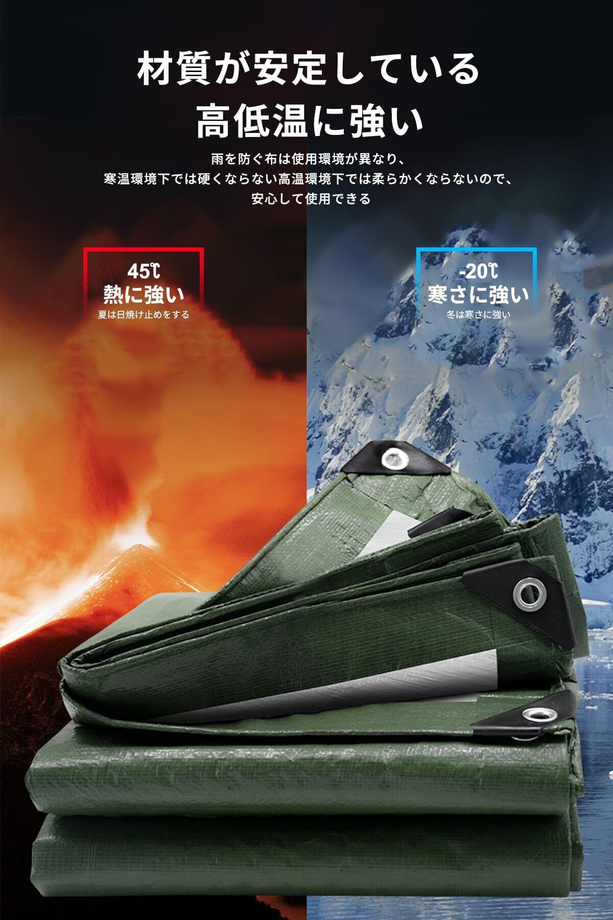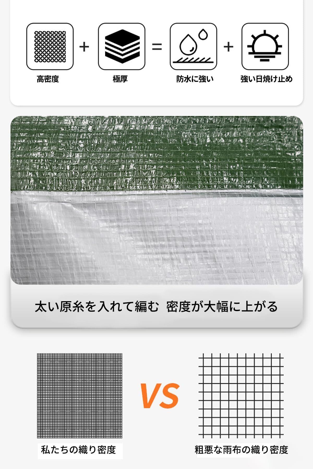 【防水&UVカットで多用途に活用】 強力な防水加工で雨や雪をしっかり遮断!UVカット効果で日焼け防止にも。キャンプ、お花見、車のカバー、工事養生など、アウトドアから防災まで幅広く使える万能シート。軽量ながら耐久性抜群で長くご利用いただけます。