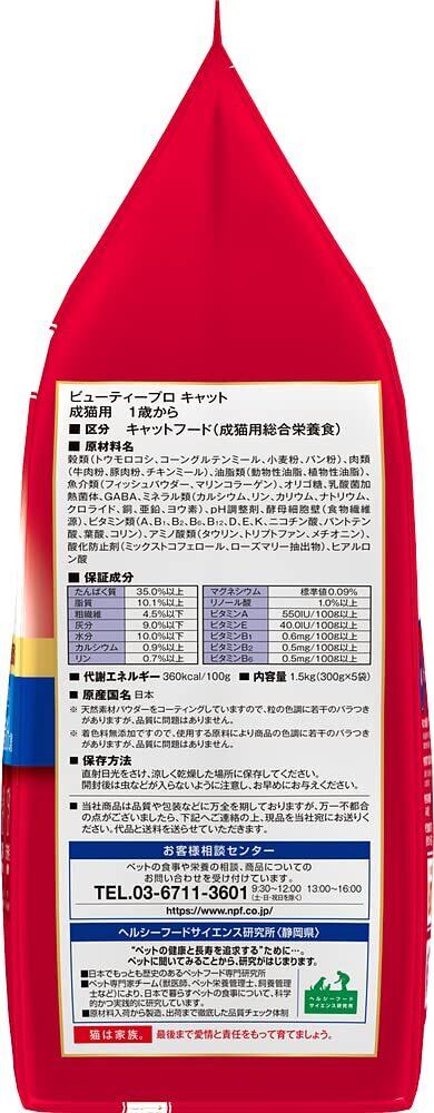 ビューティープロ キャットフード 成猫用 1歳から フィッシュ味 1.5kg 【獣医師監修】 【国産】 【小分包装】