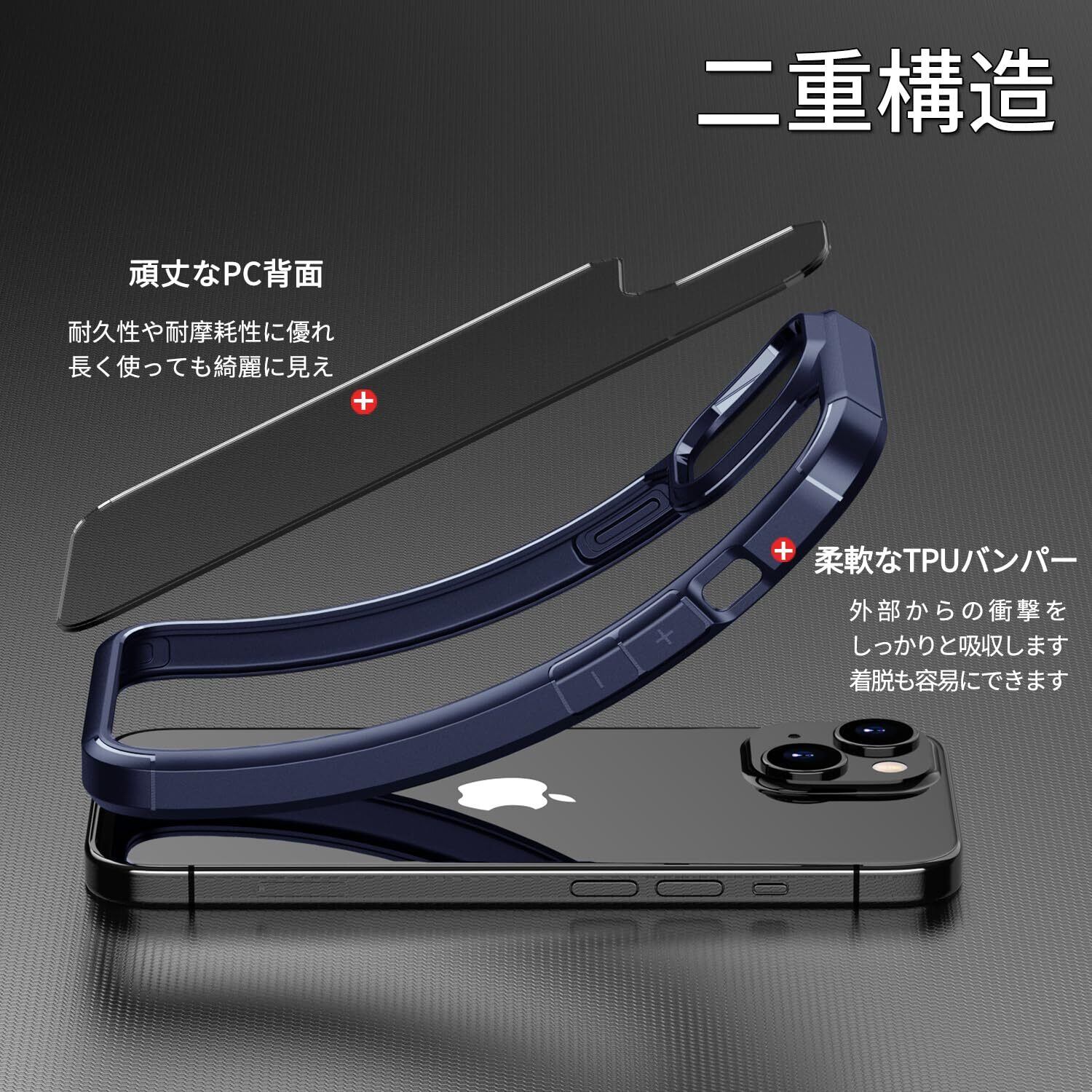【高耐衝撃・全面保護】耐震性の高いTPUバンパーと頑丈なPC背面と組み合わせた二重構造で、四隅エアバッグのデザインにより側面への衝撃を分散させる、落下してもiPhoneは損傷されない。側面のTPU材料には滑り止め加工が施されており、グリップ感が良く落下を防止する。高硬度の裏面は丈夫で、スクラッチや擦り傷を防ぎ。