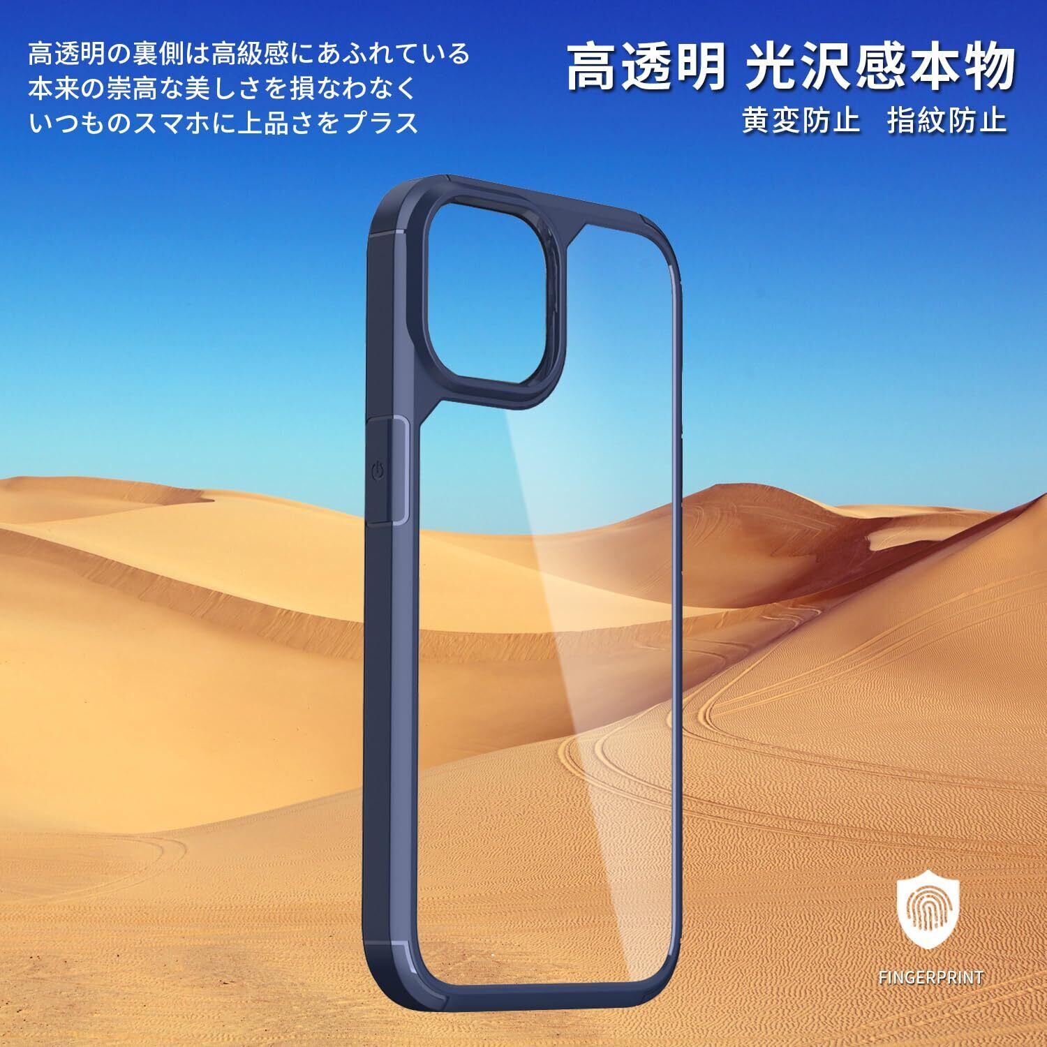Eazaki iPhone 15 用 ケース 透明 バンパーの全面保護 耐衝撃 黄変防止 指紋防止 滑り止め スレ傷防止 耐久性 カバー アイフォン15 6.1インチ用 スマホケース 携帯ケース(クリア·ブルー)
