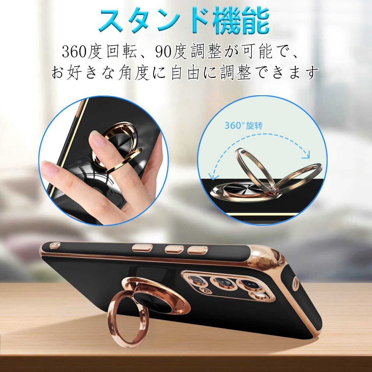 【リングの機能&スタンド機能】360°回転可能リングホルダーです。片手で携帯を操作でき、滑り止め、強奪、落下などのことを防げます。リング.ホルダーの機能は携帯を横に放置できて、いつでもどこでも音楽、facetime、映画などの娯楽番組を思い切り楽しめます。