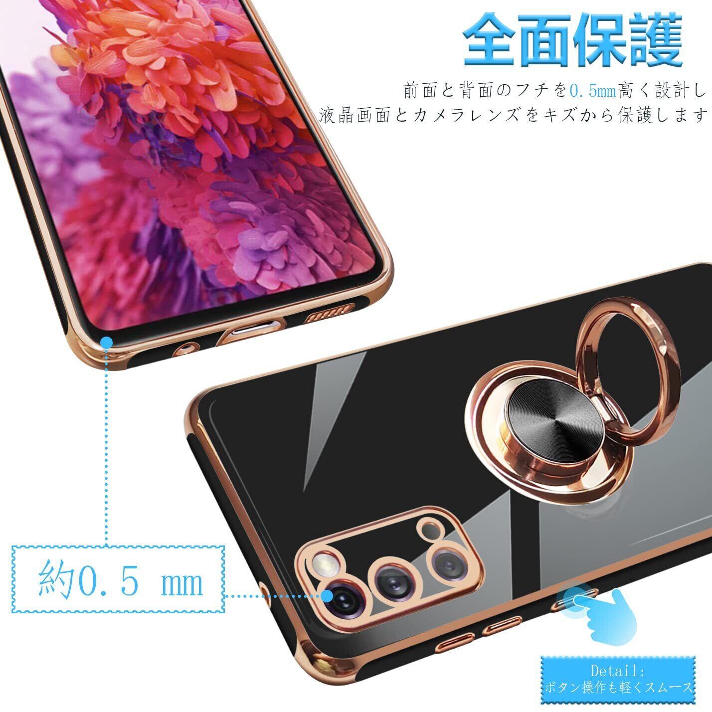 Galaxy S20 ケース リング付き ギャラクシーs20 SC-51A/SCG01 カバー リング 耐衝撃 TPU 携帯カバー シリコン スタンド機能付き 360回転車載ホルダー (ブラック)