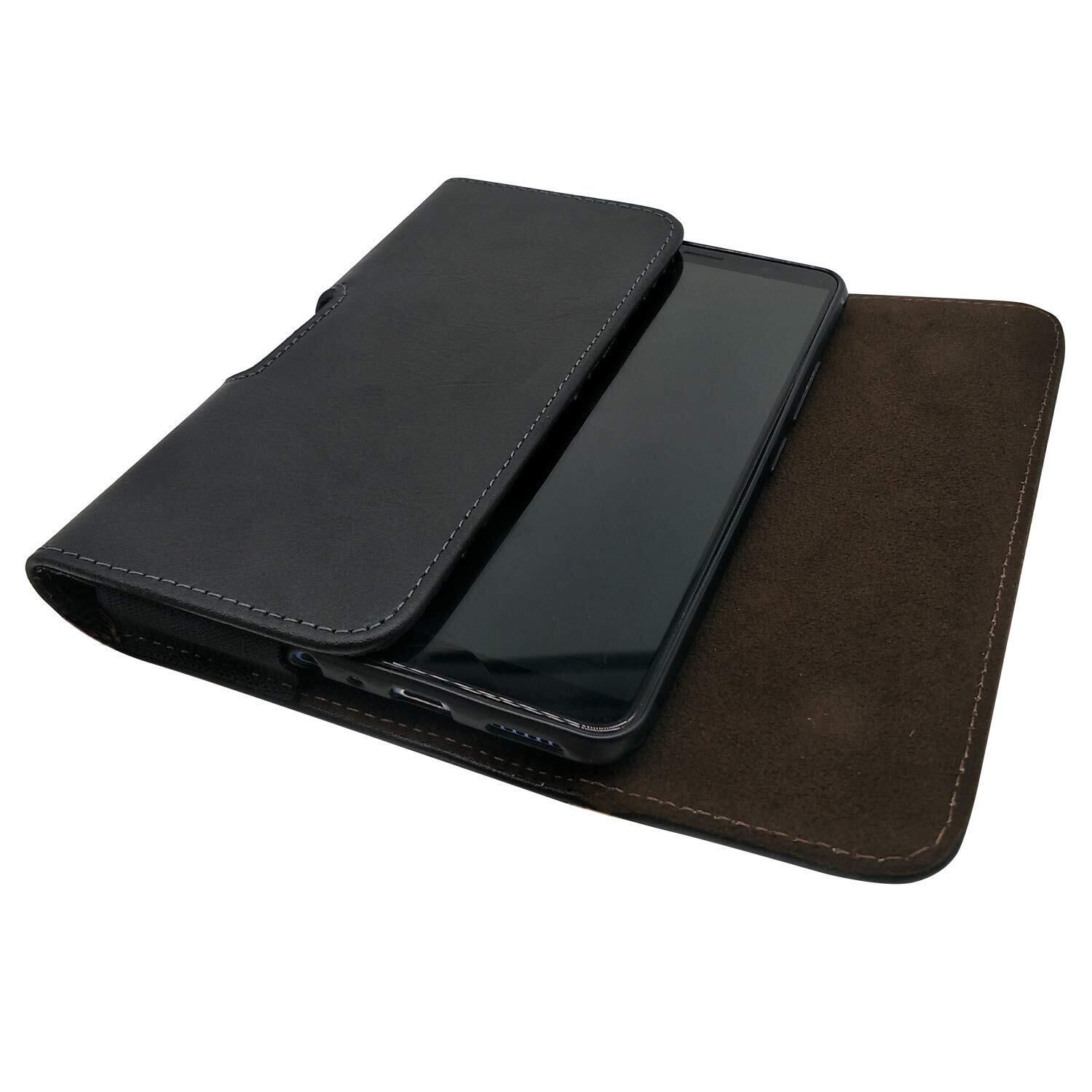 QBeau ベルトケース 横型 スマホポーチ スマートフォン 本革 iPhone13 Pro Max iPhone XS Max 8 Plus 7 Plus/GALAXY Note 9 Note 8/HuaWei P30 Pro ベルト スマホ スマホケース 携帯電話用 ブラック