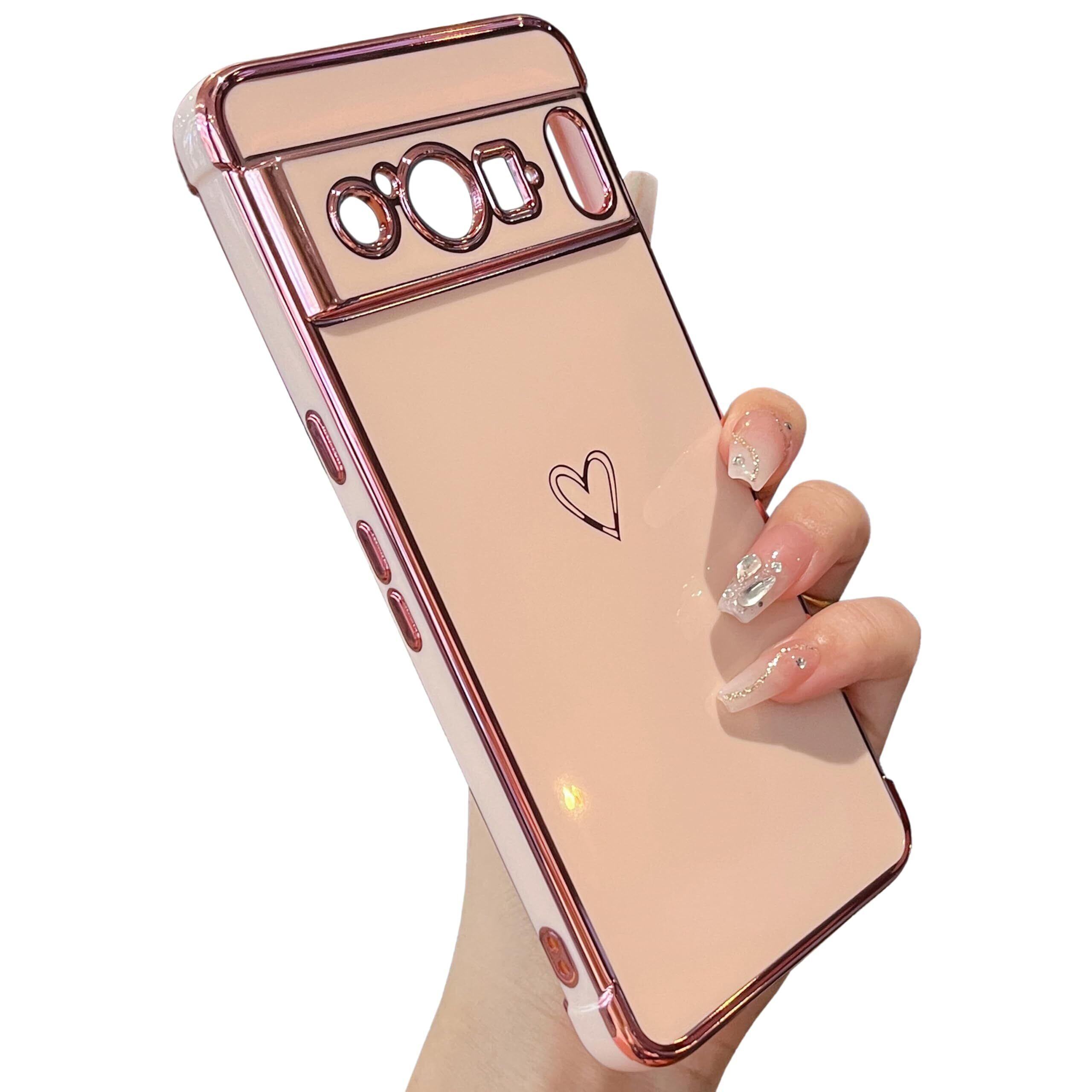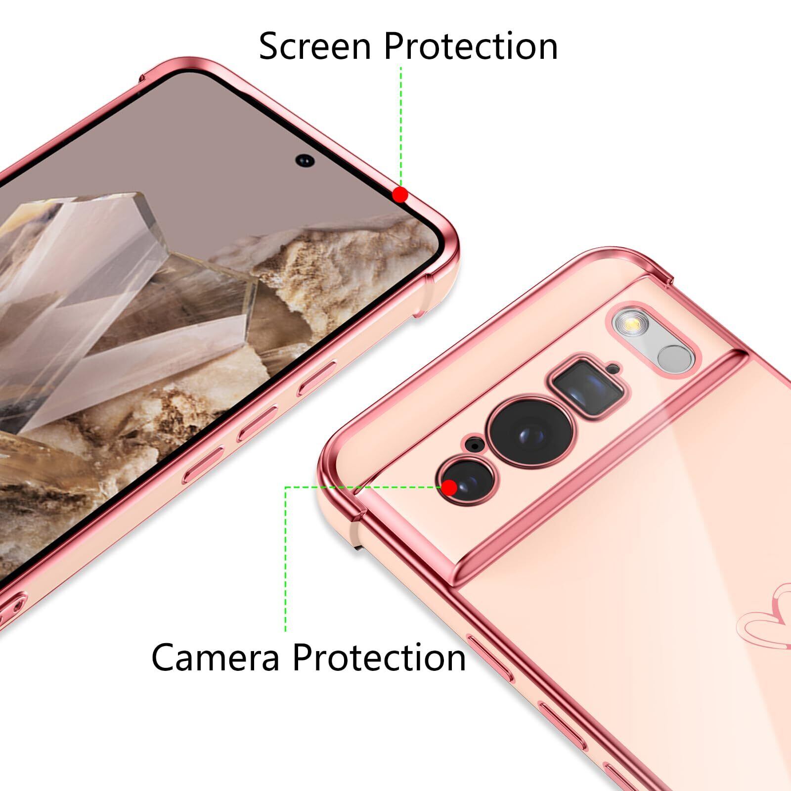 ZTOFERA Google Pixel 8 Pro 用 ハートケース おしゃれ 韓国 かわいい グーグル ピクセル 8 Pro ケース 柔軟な TPU シリコン メッキ加工 ソフト 軽量 耐衝撃 携帯カバー 女性 心パターン Pixel 8 Pro スマホケース ワイヤレス充電対応 (ピンク)