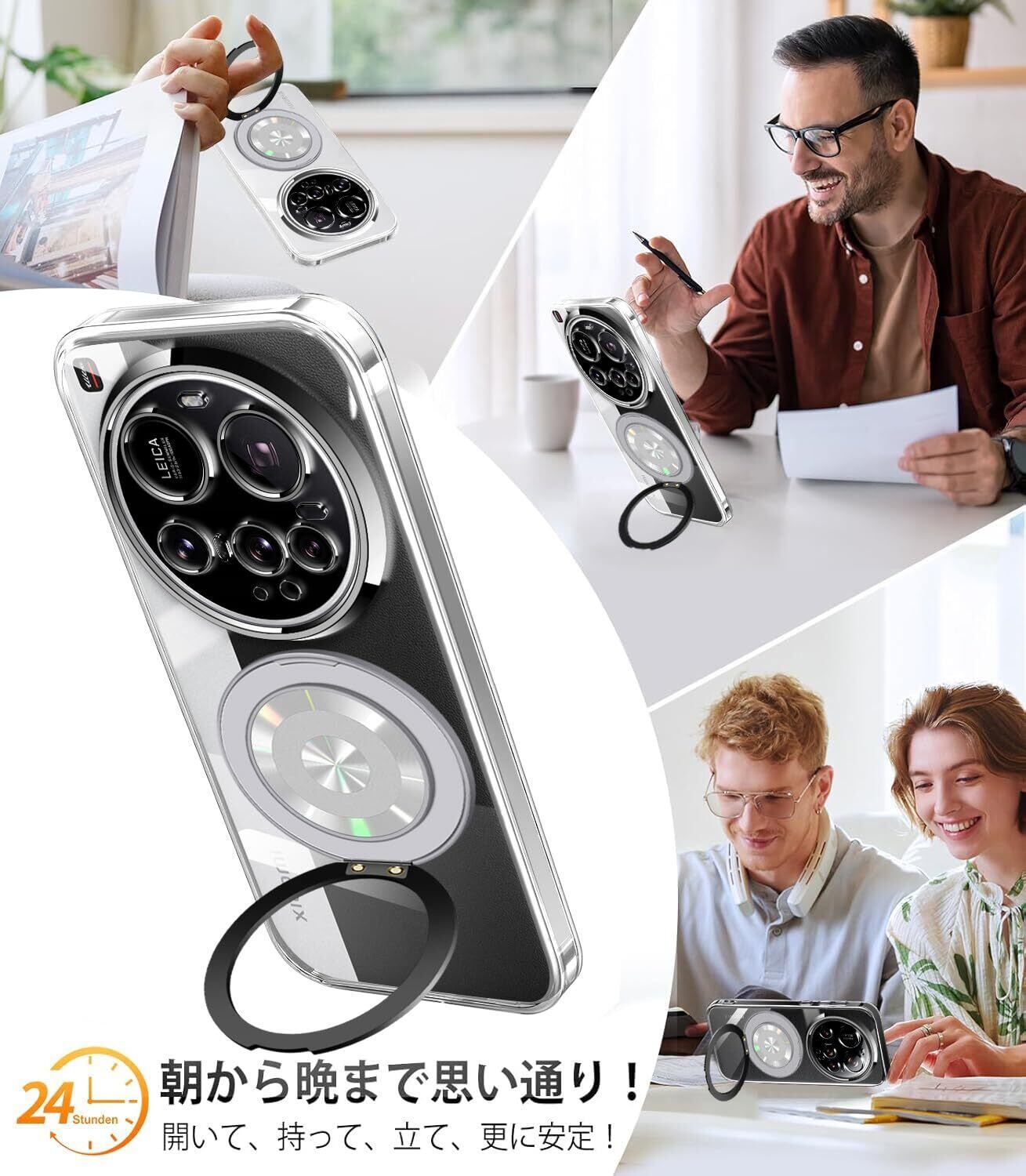 Xiaomi 15 Ultra ケース クリア リング 360°回転スタンド 耐衝撃 シャオミ 15Ultra カバー 薄型 軽量 人気 xiaomi 15 ultra スマホケース 透明 TPU 車載ホルダー対応 (クリア)