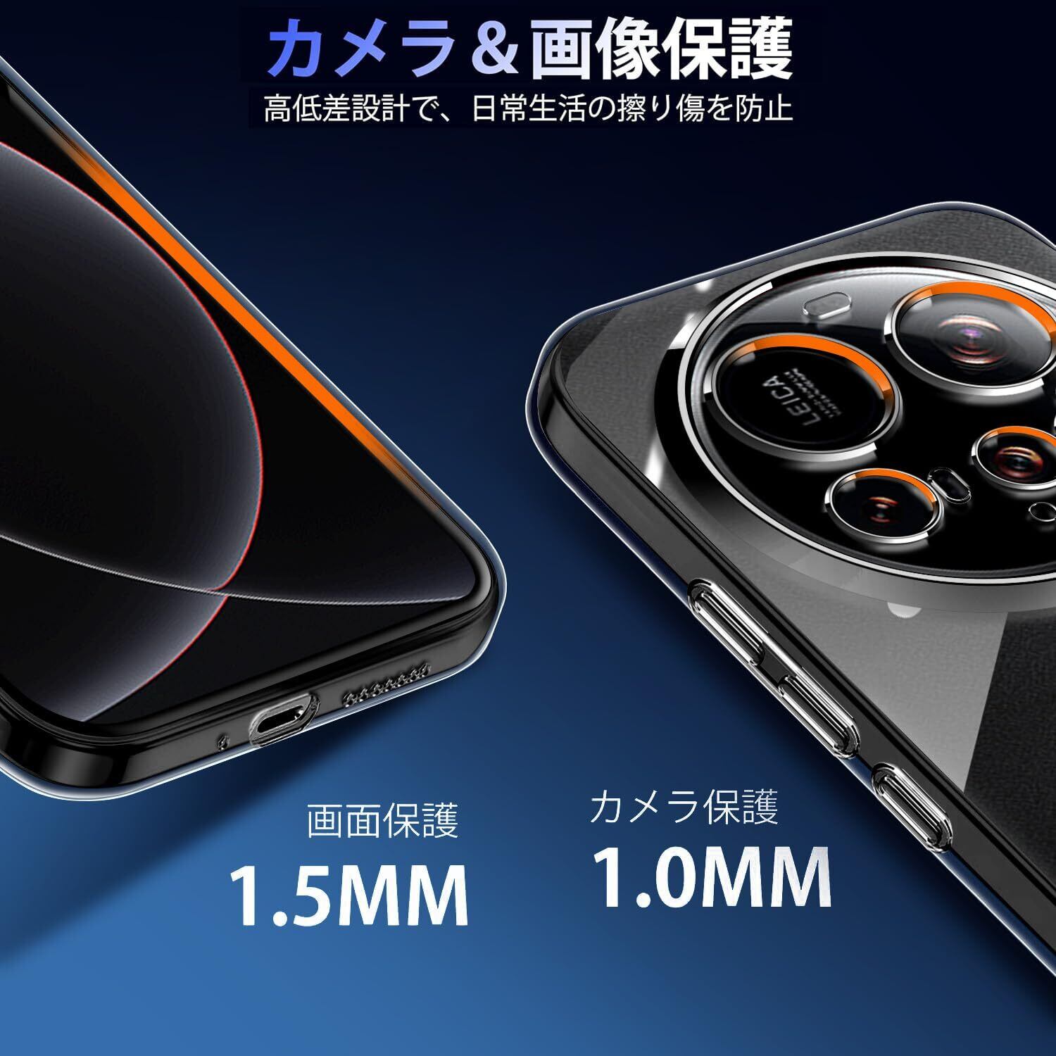 【安心保護】前面と背面カメラ部のフチを高く設計し、液晶画面とカメラレンズをキズから保護します。破損リスクを低減、高額の修理費用を節約。