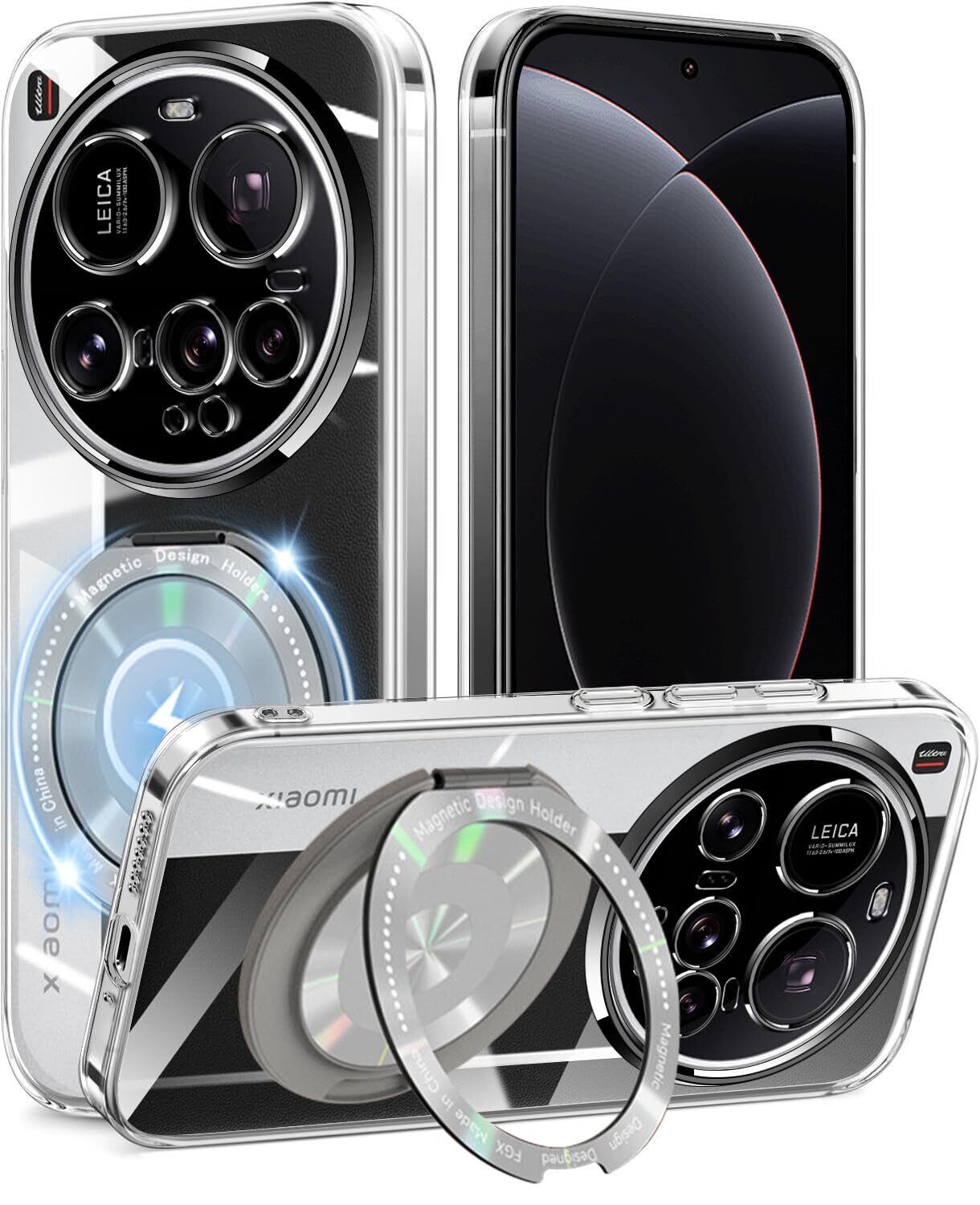 【新着商品】Xiaomi 15 Ultra ケース クリア リング 360°回転スタンド 耐衝撃 シャオミ 15Ultra カバー 薄型 軽量 人気 xiaomi 15 ultra スマホケース 透明 TPU 車載ホルダー対応 (クリア)