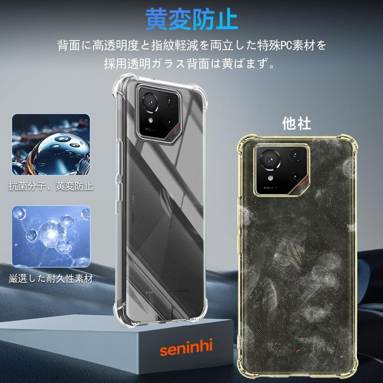 【360°フルガード 軍用グレード、高い耐衝撃性】 本製品はに対応 ASUS ROG Phone 9 / 9 Pro する透明ケースです。外側のシェルは高い耐黄い耐性を備えた最先端技術ADMを採用しております。しかも環境にやさしく、無毒で無味の高品質の素材を使用して、酸化防止処理しており、長年でも黄色くなりません。多数回のテストした後、2mの高さで様々な角度から26回落としましたが、携帯電話が全然傷がありませんでした!更に四隅の耐衝撃性は通常の携帯電話ケースの5倍に達し、携帯電話を全面的に保護できます。(ご注意:ご購入前機種をよくご確認くださいね。間違った機種の購入による使えないことを避けてください)
