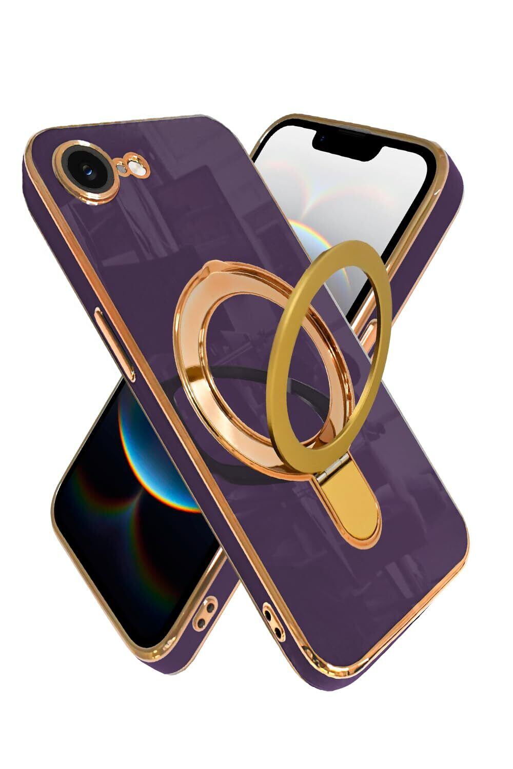 【人気商品】シズカウィルRe iPhone 16e ケース MagSafe対応 リング スタンド レンズ保護 カバー ワイヤレス充電 耐衝撃 ハイブリッド8 スマホケース 1個入り パープル