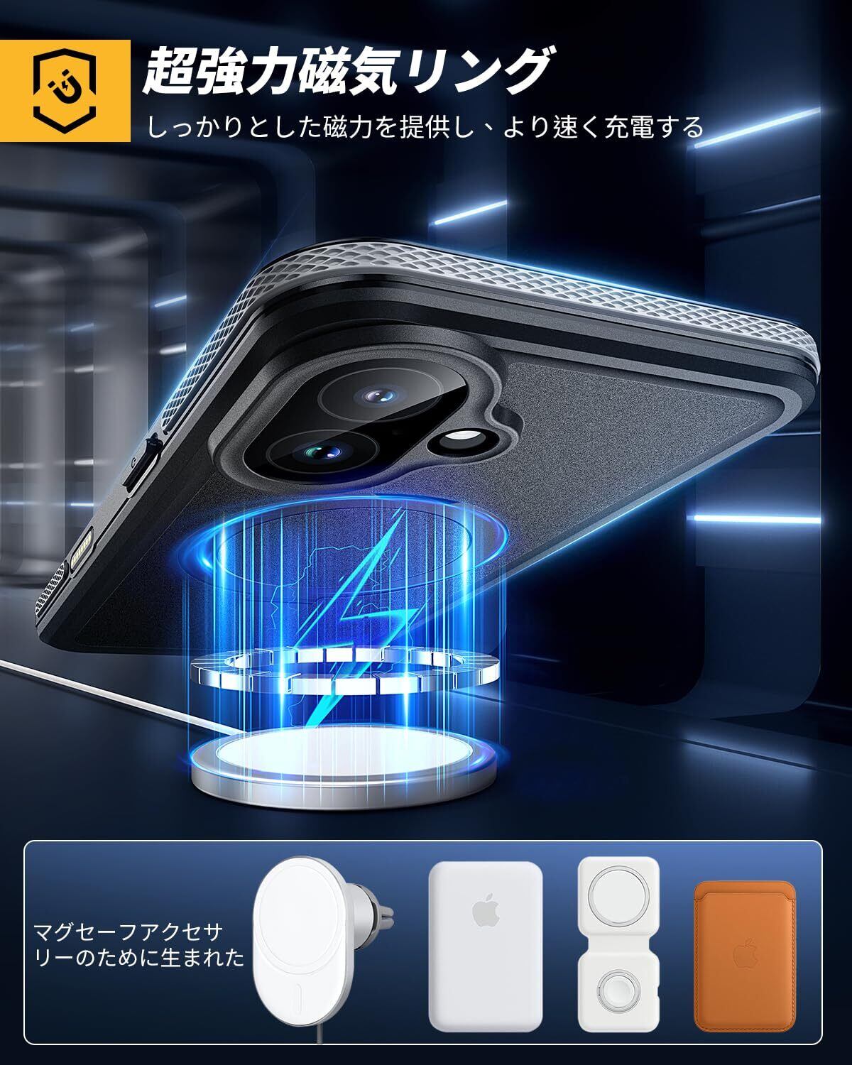 【隠しスタンド機能・MagSafe対応】便利な隠れスタンドはケースと一体型になり、絶妙なデザインで携帯を自由に多角度を調節でき、映像や読書などに楽しめることができます。強力なN52マグネットを採用し、急速充電機能を備え、安全に使用できるMagsafeアクセサリーに完全対応しています。