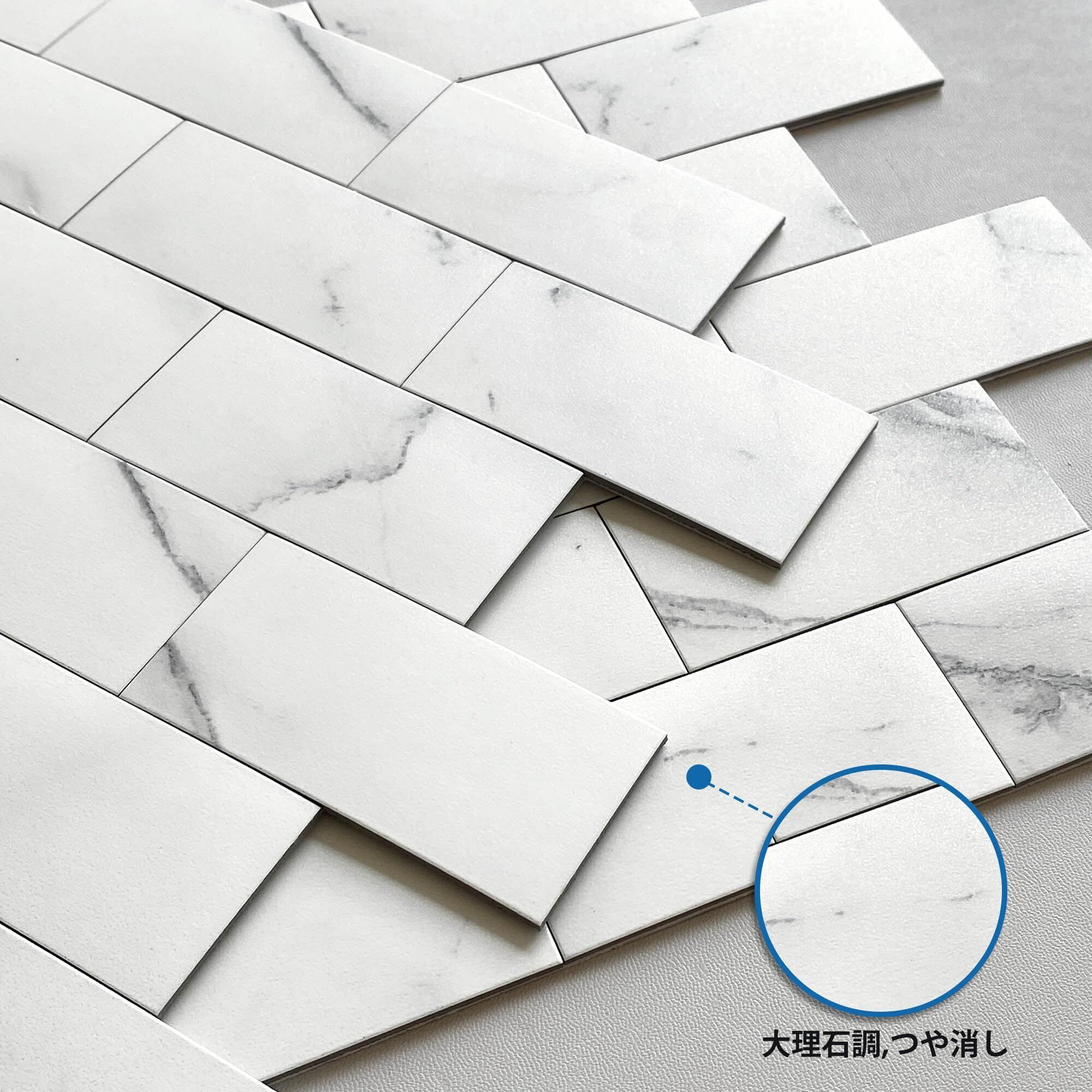高級感のモザイクタイルシール:まるで本物みたいなモザイクタイルシール,大理石風,つや消し。強粘着の粘着剤を使っているため、ビニル壁紙、化粧合板などの平滑な面にきれいに貼ることができます,タイル、金属板、ガラス面にも貼り付けることができます