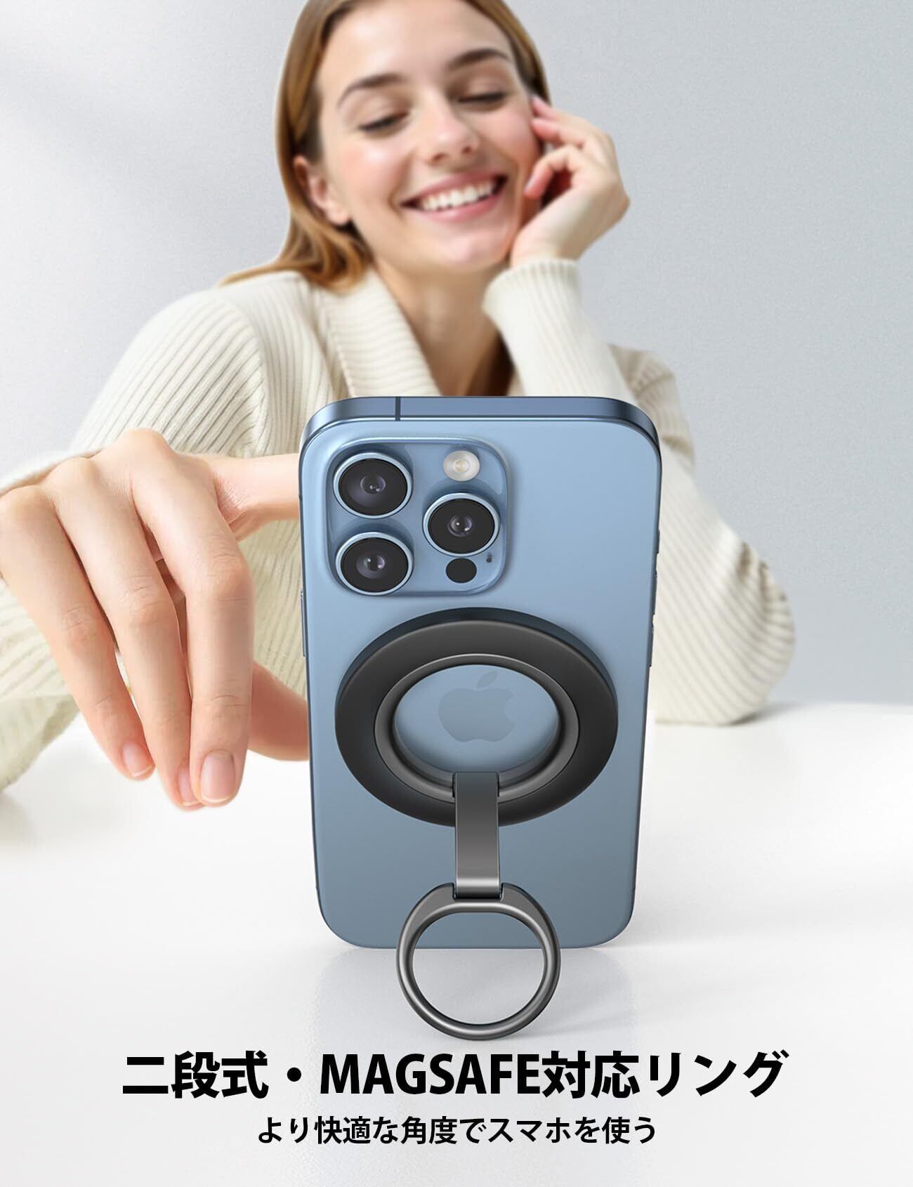 【2025二段式・縦置き】 Lamicall マグセーフ スマホ リング : MagSafe対応 リング マグネット式 スマホリング ホルダー iphone 磁石 リング 携帯 バンカーリング magsafe リング 横置き 360度回転 磁気増強 メタルリング付き 取り外し iPhone 16 16 Plus 16 pro 16 pro max 15 14 mini アンドロイドに対応 ブラック