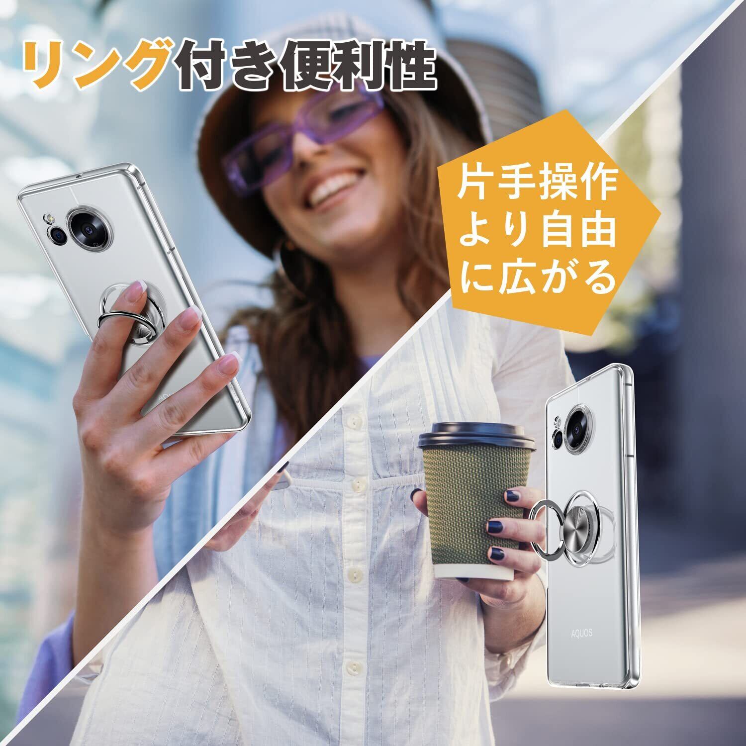 AQUOS Sense8 ケース リング付き クリア アクオスセンス8 / SH-54D / SHG11 用 携帯ケース OURJOY スマホケース 極薄 透明 TPU 耐衝撃 スタンド機能 車載ホルダー カバー・クリア