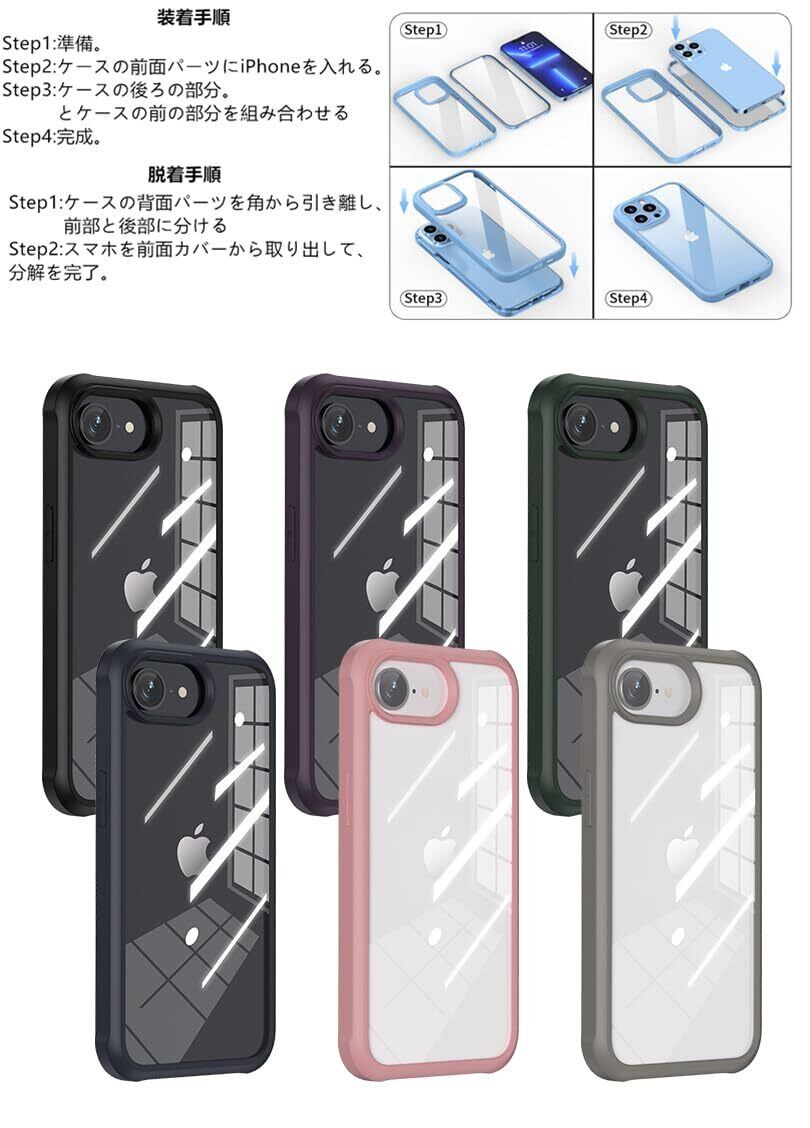 【完全的に全面保護】:マグネット式と違い、角の部分には爪による、両面パーツをしっかりと固定され、高場所から落として、ケースは分離しません。外側のフレームは柔軟なシリコン素材で、落下時に衝撃が吸収できます。また、背面は高透明なPC素材のプレートで、背面デザインも綺麗に確認できます。