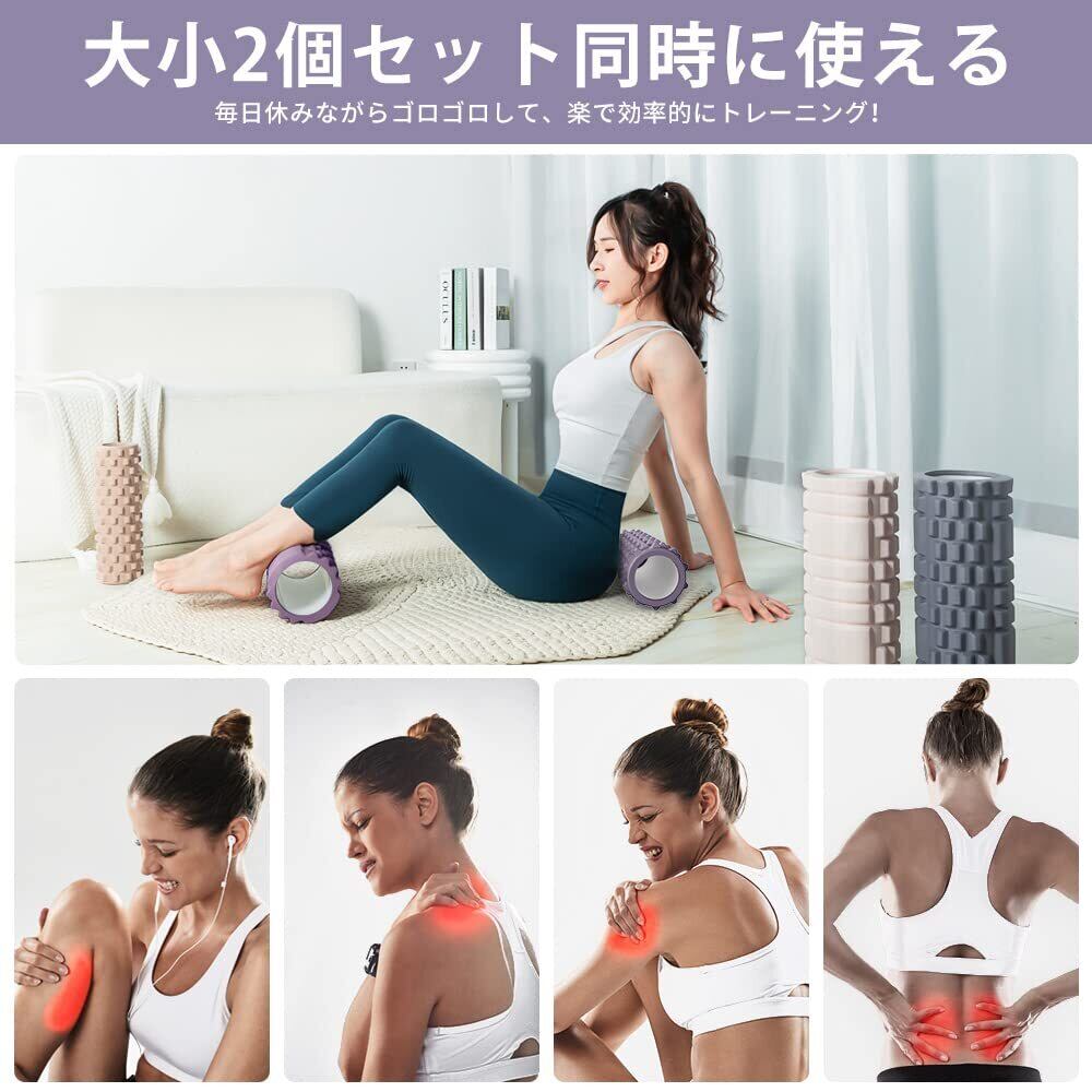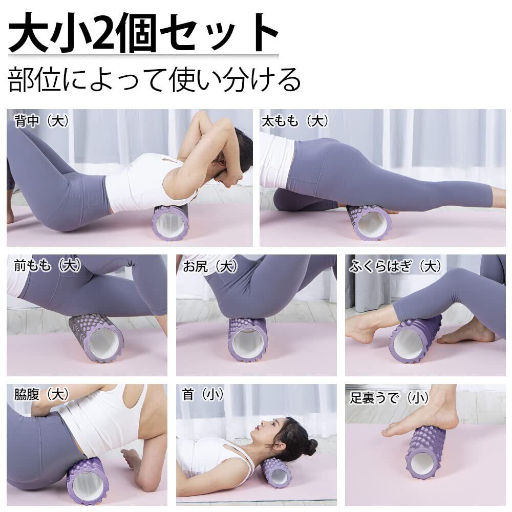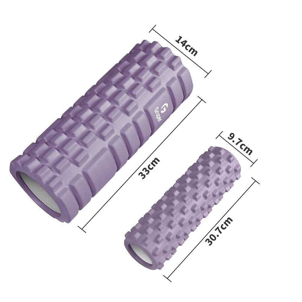 Gruperフォームローラー 筋膜リリース 大小2個セット 筋膜ローラー ストレッチローラー グリッドフォームローラー (深紫)