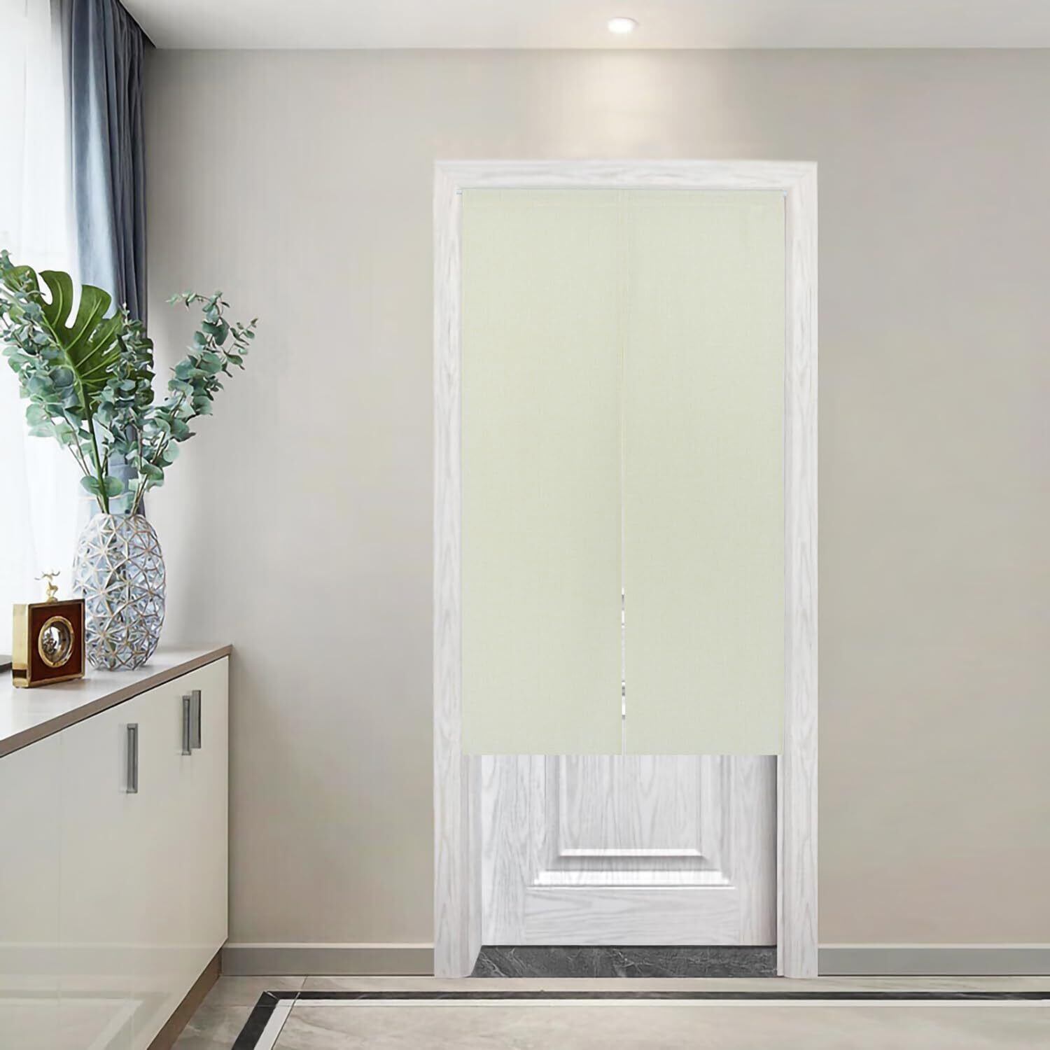 Siykkay おしゃれ目隠しのれん和風暖簾5色選べ麻風キチンリビングロングカーテン (アイボリー, 幅85㎝X丈150㎝)