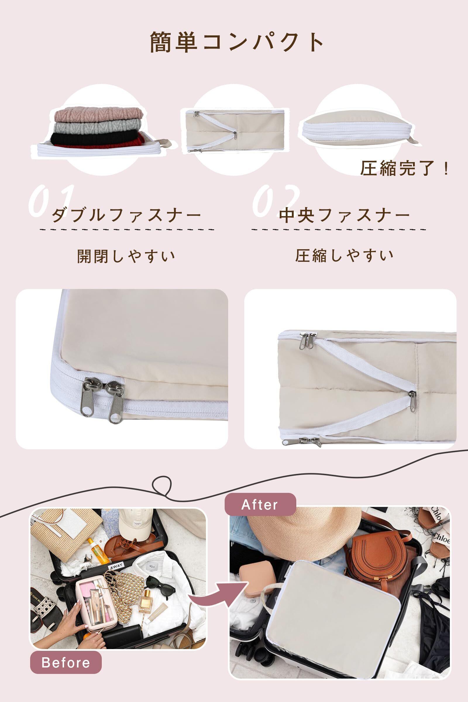 【荷物の整理】圧縮ポーチは、異なる種類のアイテムを分類して整理するのに役立ちます。例えば、洋服や下着、化粧品などを別々のポーチに入れ、必要なものを簡単に見つけることができます。