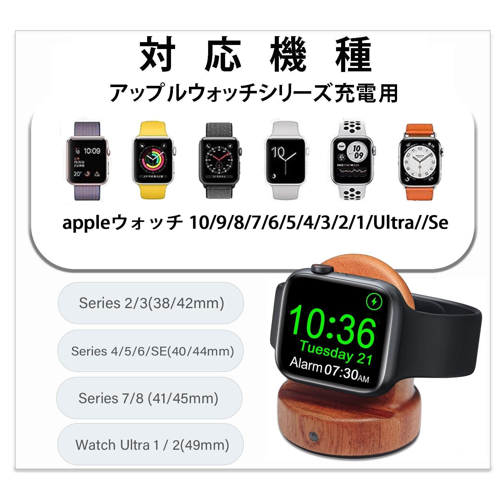【Apple Watchの広範な対応性】かわいいApple Watch充電ホルダー、 Apple Watch Series Ultra/Ultra 2/SE/9/8/7/6/5/4/3/2/1(38mm、40mm、41mm、42mm、44mm、45mmのバージョンを含む)、Apple Watch Sport、Apple Watch Nike Plus、Apple Watch Hermes、Apple Watch Editionに対応しています。