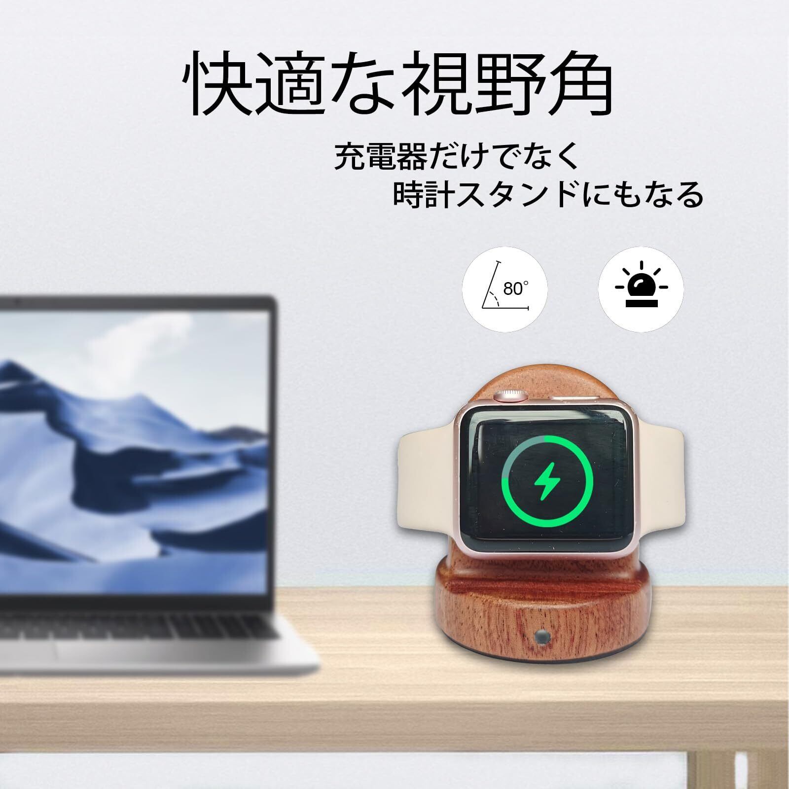 【快適な視野角】アップルウォッチ充電器としてだけでなく、ウォッチスタンドとしても使えます。視野角は80度で、寝る前や起きた後、オフィスで作業しているときなど、時計の画面をよりよく見ることができます。