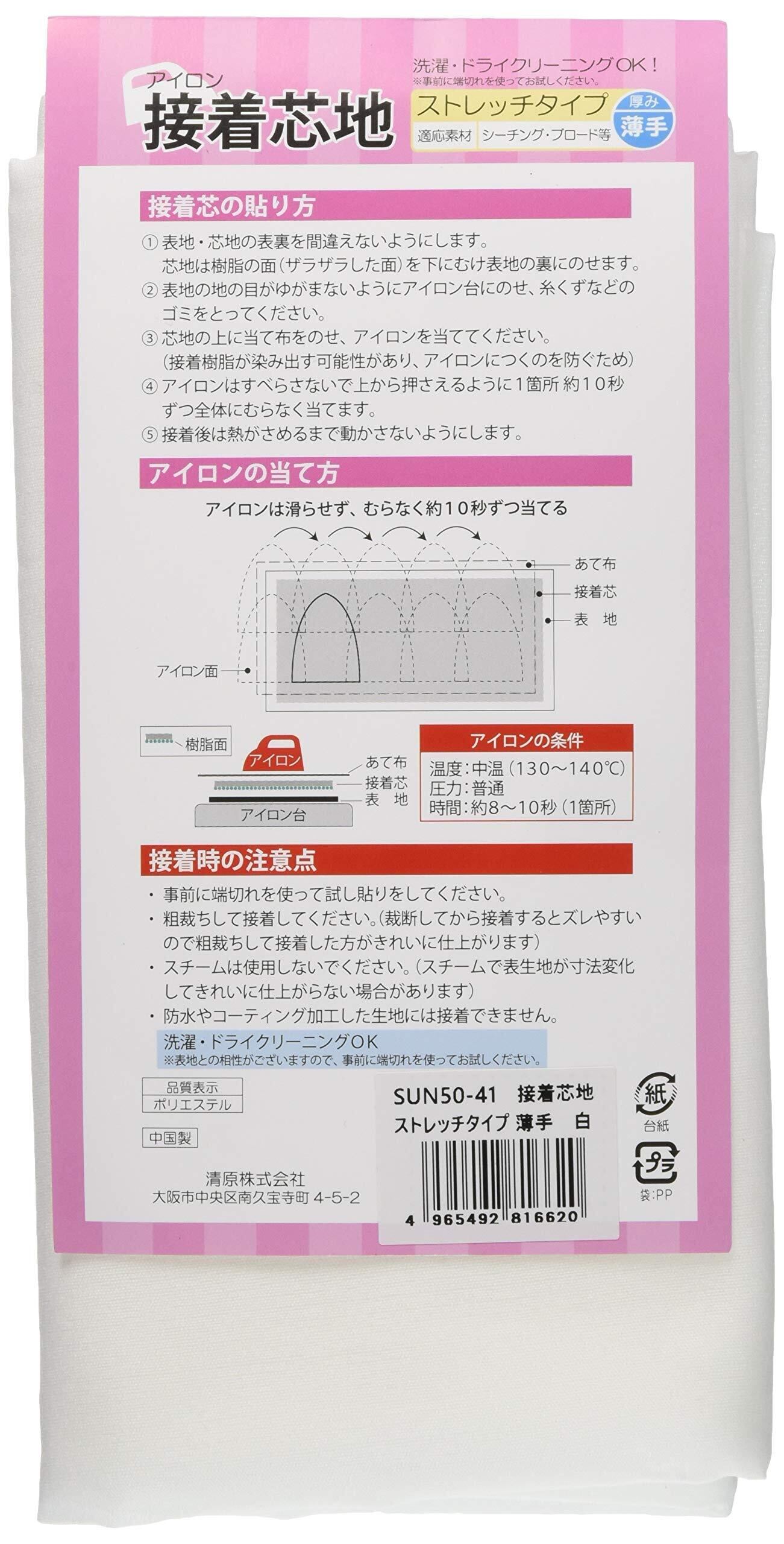 KIYOHARA サンコッコー 接着芯地 ストレッチ 薄手 幅122cm×長さ100cm 白 SUN50-41