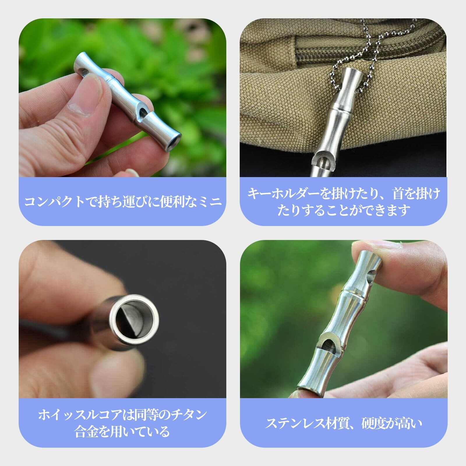 【高品質な素材】ホイッスルは高品質のステンレス鋼製なので、頑丈と軽量を両立し、金属臭がないです。腐食性と耐錆性が素敵、環境にやさしい、体に無害です。大音量でクリア、非常に遠くから聞こえます。鮮明で高音質の音を楽しむことが可能です。緊急時すごく頼もしい!