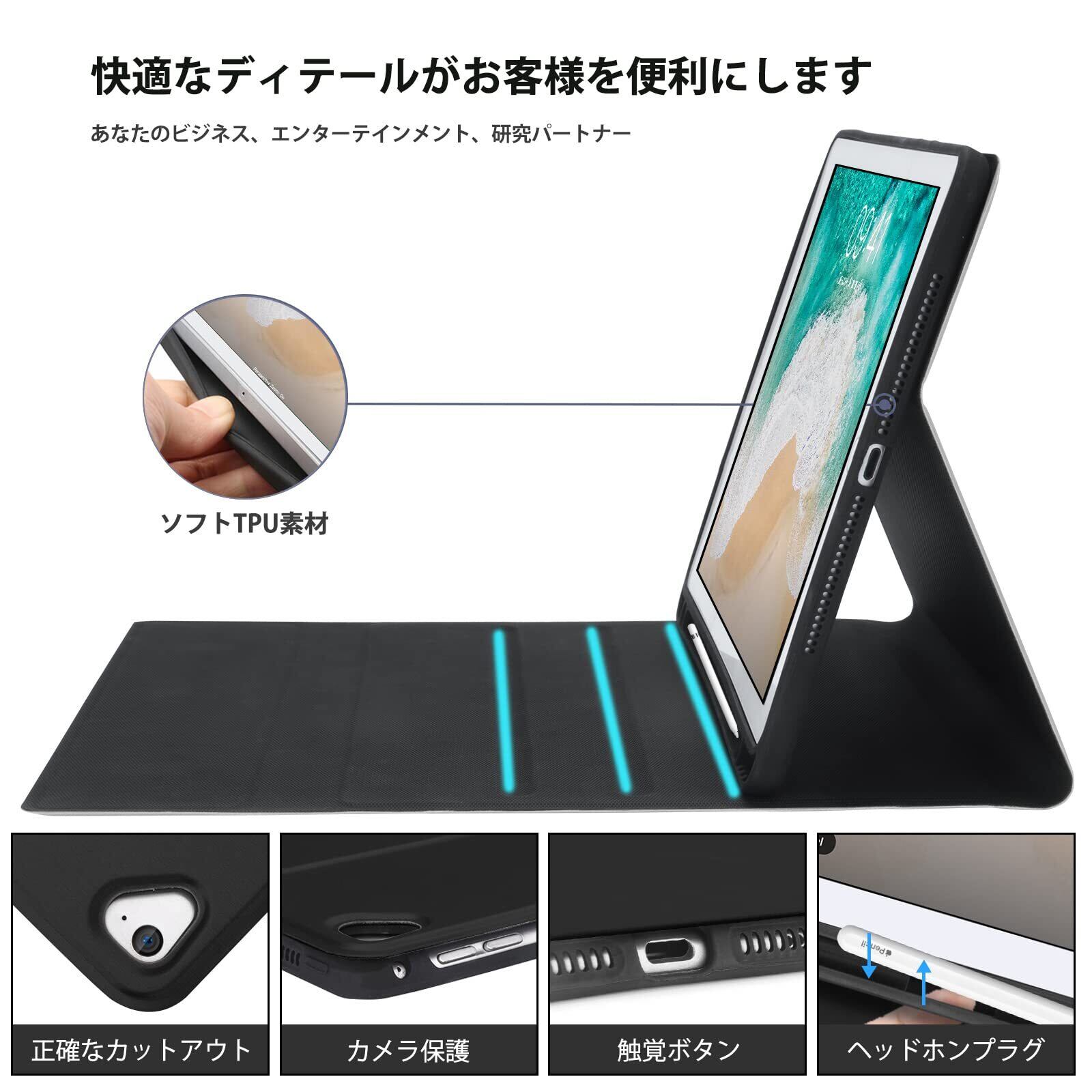 【Apple pencil収納&安全性】Apple pencil収納用のホルダーを付き、収納や持ち運びに便利で、ペンをミスしたの可能性を減っています。 9.7iPadケースはマグネットを内蔵され、カバーをしっかり留めます。バックに入れてもバラバラになりません。