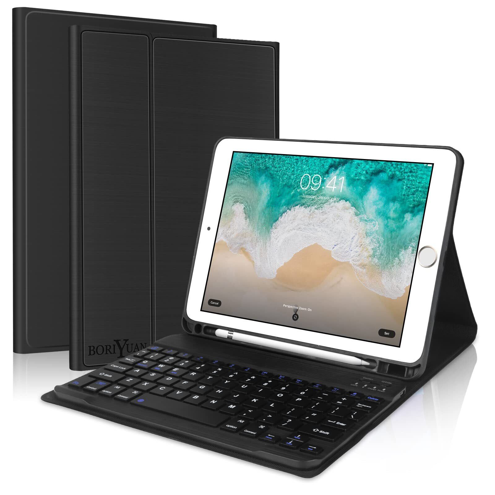 【新春セール】【2025年昇級版】 iPad 9.7キーボード ケース iPad 第5世代 第6世代 キーボードケース対応 iPad pro 9.7/i-Pad air/air2用 キーボード pencil収納 脱着式 Bluetoothキーボ ード 手帳型 オートスリープ機能付き PUレザー 手帳型 9.7インチ対応 日本語説明書付き ブラック