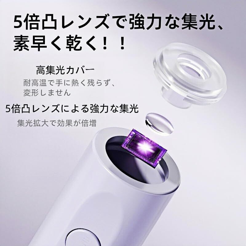 【速乾技術】:尾部にUVランプが付属し、甲面を急速に硬化させ、人体工学グリップに合わせて片手操作を実現し、マニキュアを塗った後、直接乾燥することができ、他のツールを切り替える必要がなく、1台の機械の多種の用途を実現する。
