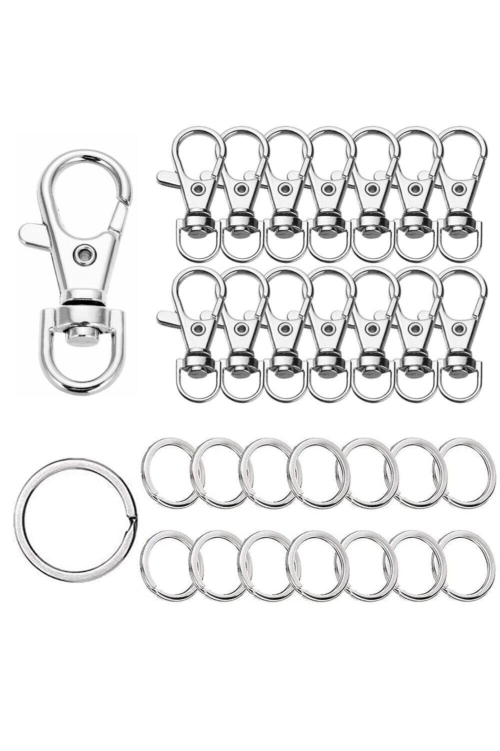 YINKE キーホルダー金具 キーホルダー パーツ キーリング リング チャーム ナスカン レジン パーツ キーホルダーパーツ 回転フック 丸カン 付き ワンタッチ ア 手芸用品 ハンドメイド アクセサリー 手作り 素材 DIY 副資材 全長44mm 50個入り (シルバー 15個入り)