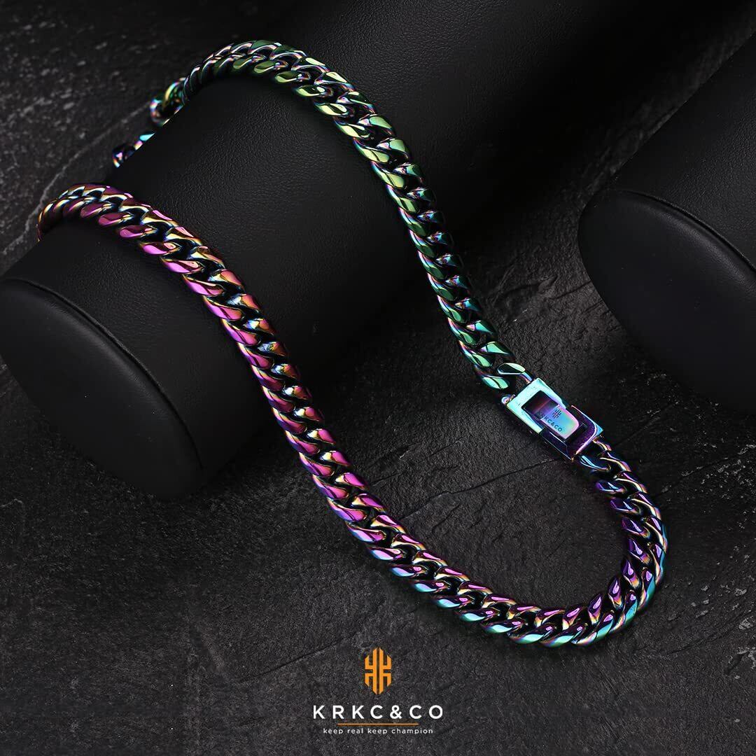 KRKC&CO 喜平ネックレス メンズ マイアミキューバンチェーン 幅8/10mm ステンレス k18メッキ 4面カット ヒップホップ ラッパー B系アクセサリー ギフト プレゼント金属アレルギー対応