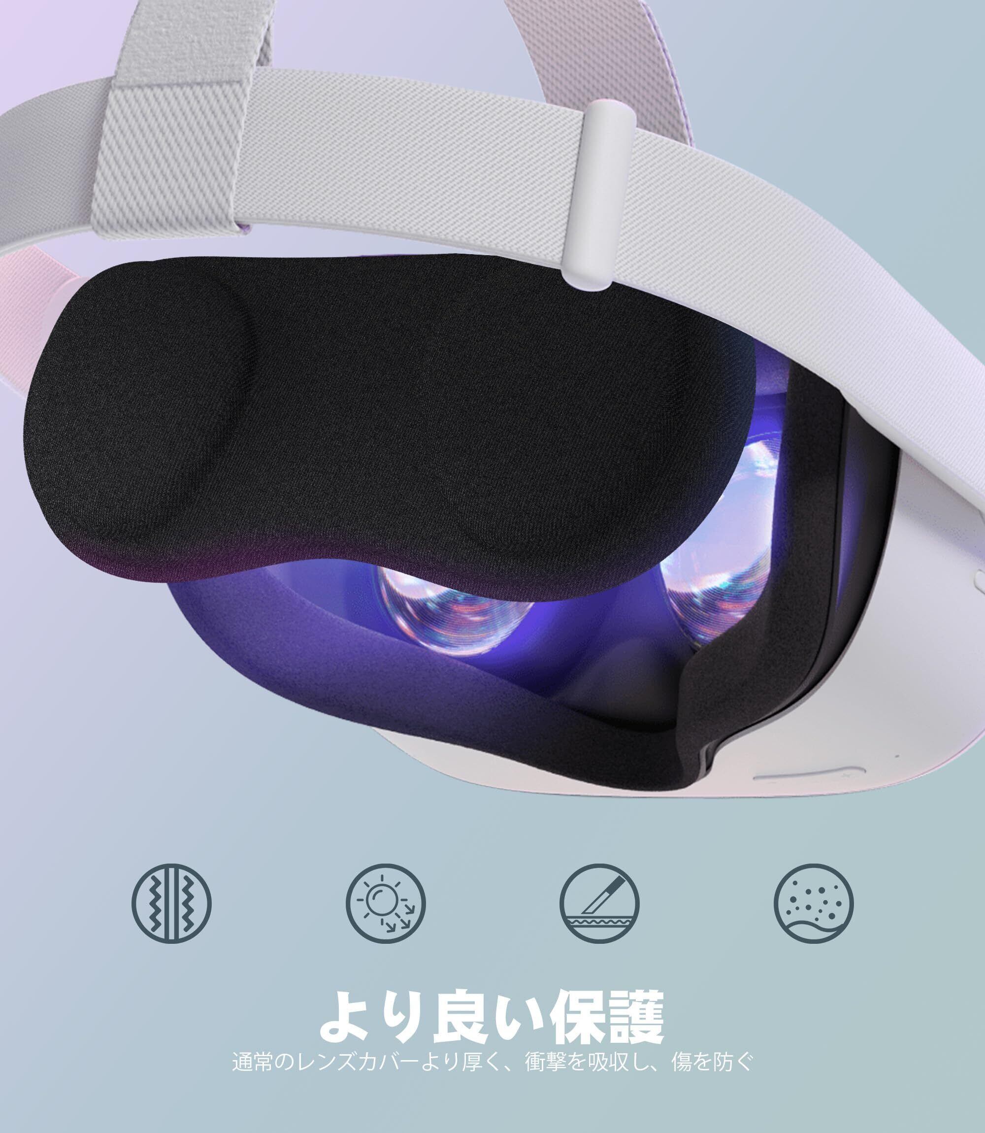 パッケージ内容:ヘッドセットカバー、防塵レンズカバー (Quest3及びコントローラーは同梱されておりません)。