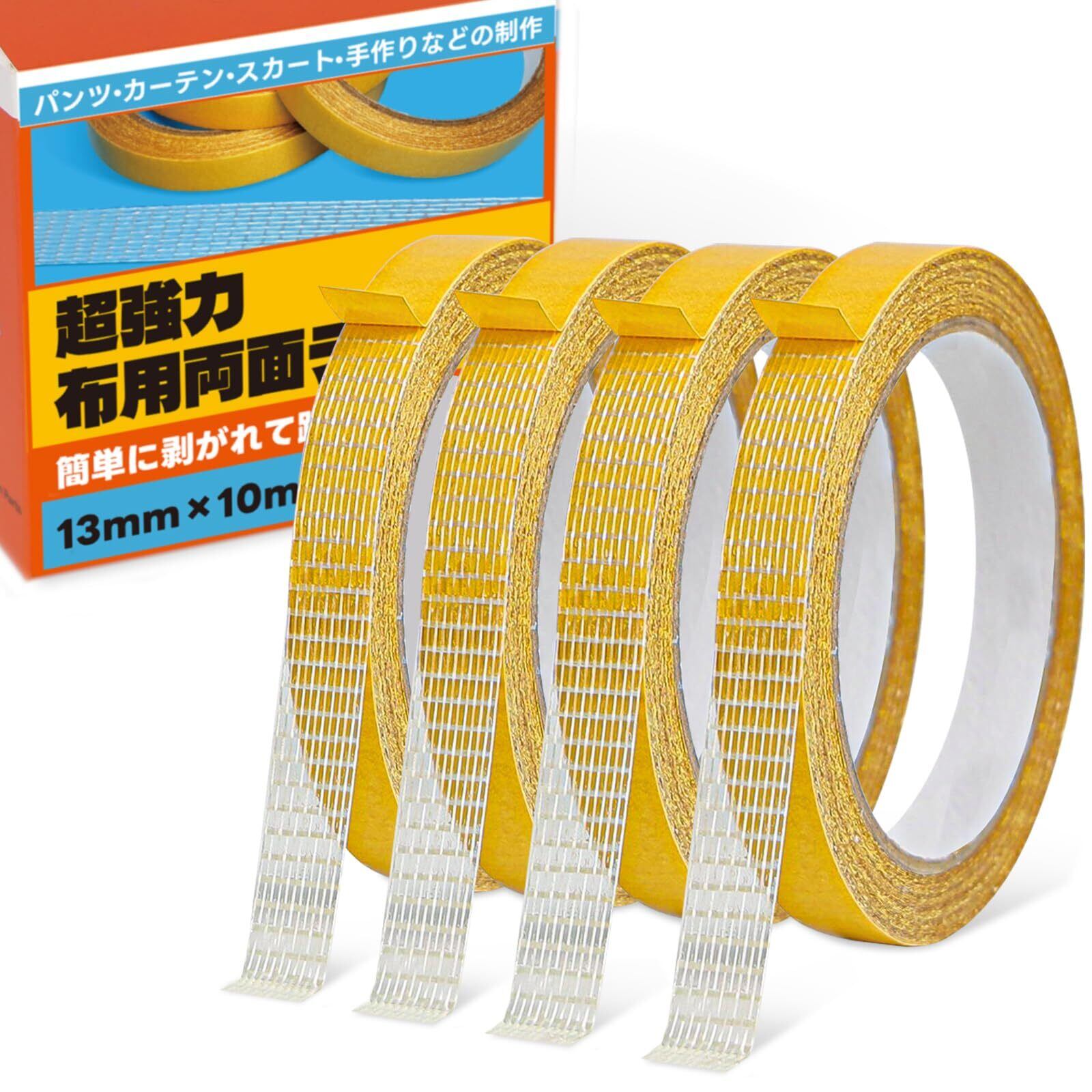【新着商品】布用両面テープ【缝纫やアイロン不要!織物に大活躍!大容量4本セット】 薄型 超強力 裾上げテープ カーペット用両面テープ 裾直し パンチラ防止 織物用補修テープ 肌ピタ粘着テープ 衣類用 耐久性優れる ズボン カーテン 織物 スカート 着崩れ防止 ズレ防止DIY 説明書 動画解説 マチ針不要 洗濯OK 手芸用品 布 トーギー サイズ:13mm×10m 4本セット