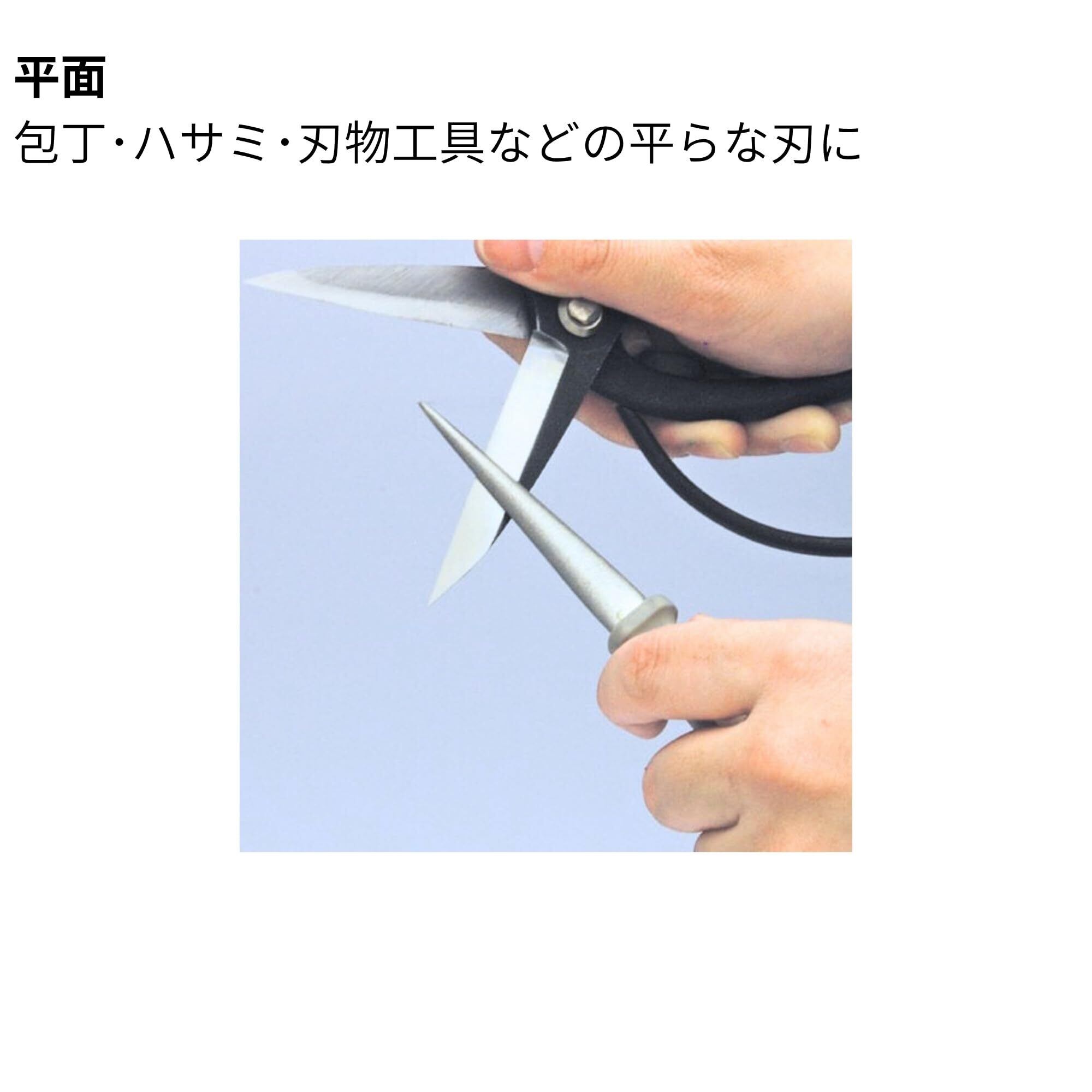 平面:包丁・ハサミ・刃物工具などの平らな刃に、曲面:園芸鋏・鎌などのカーブある刃に
